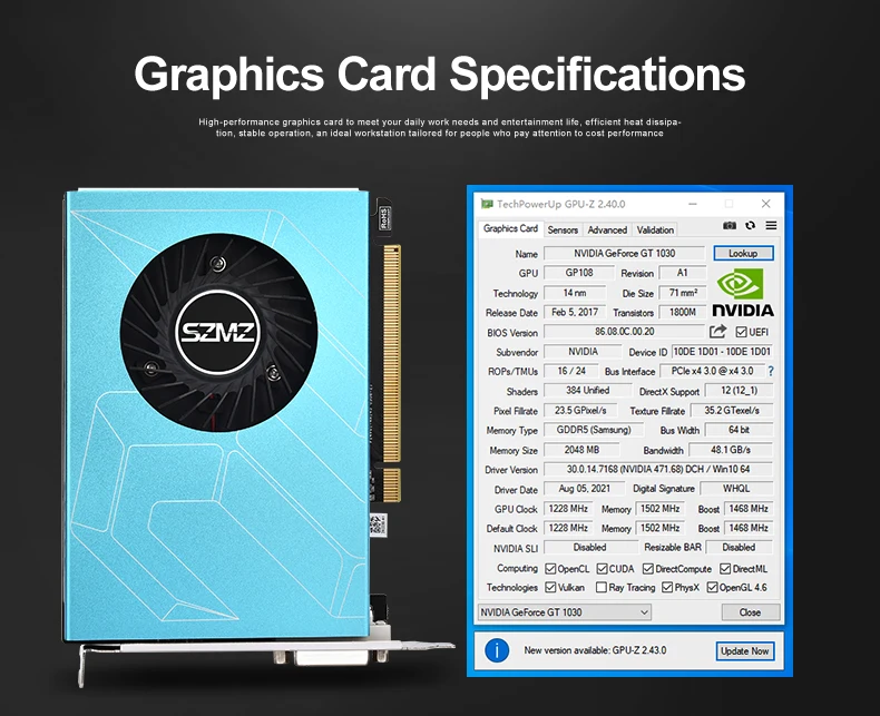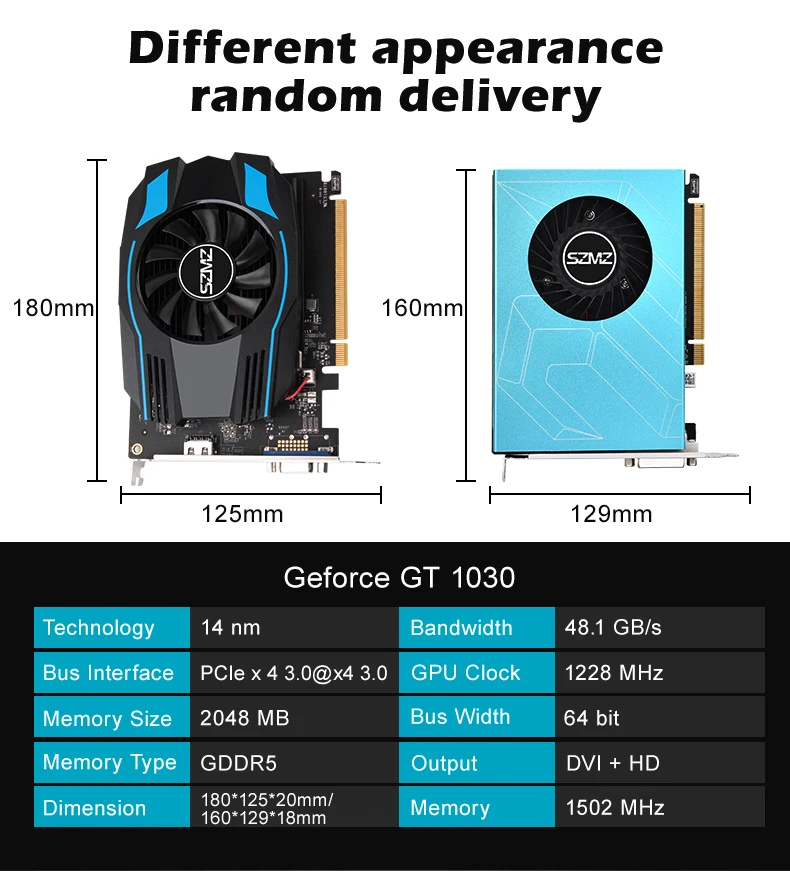 SZMZ Новая графическая карта NVIDIA GeForce GT 1030 2 Гб 14 нм GT1030 2G GDDR5 64Bit PCIE 3,0 X4 GPU настольные видеокарты игровые HDMI DVI