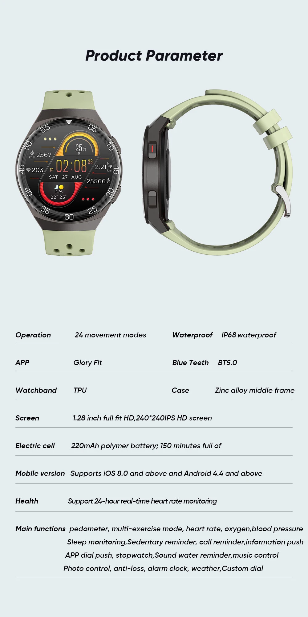 Экран: полноразмерный сенсорный экран 1,28 дюйма