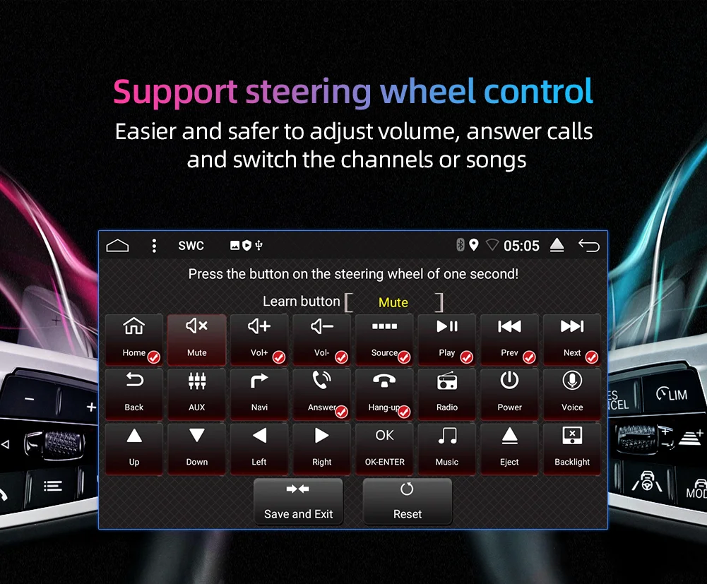 6:Mirror Link,Steering wheel control :Support