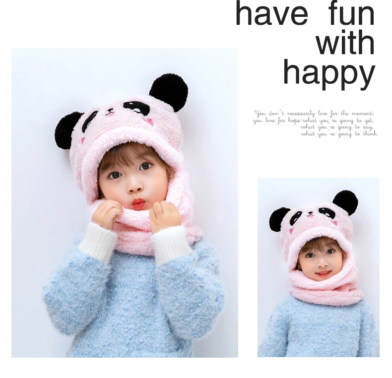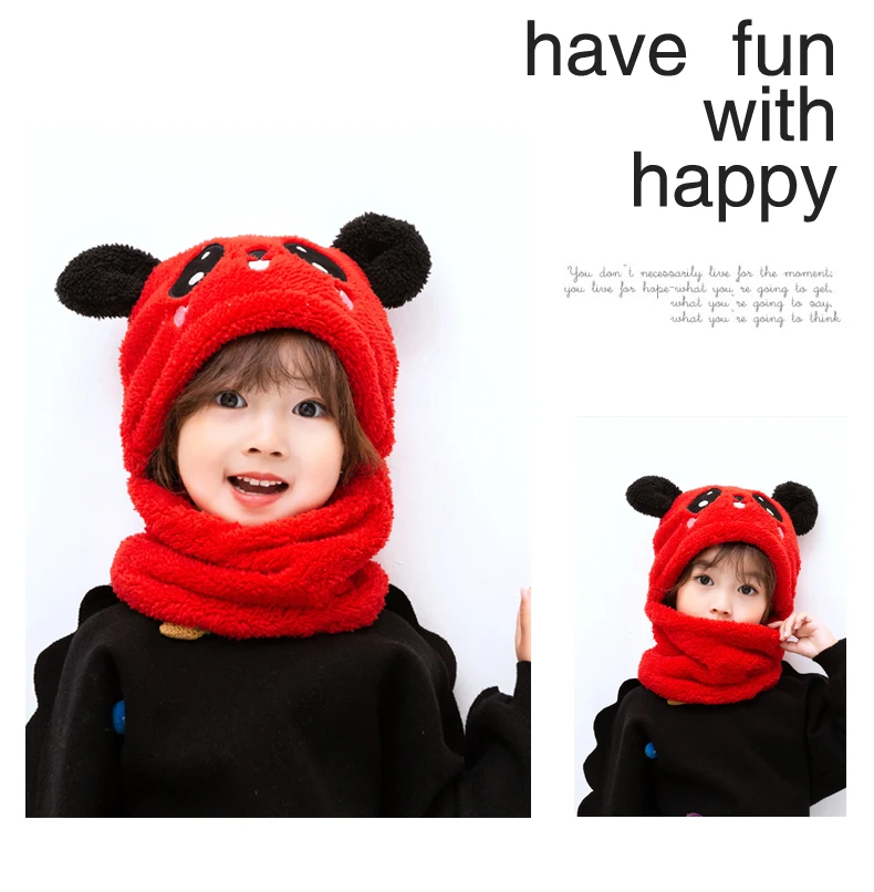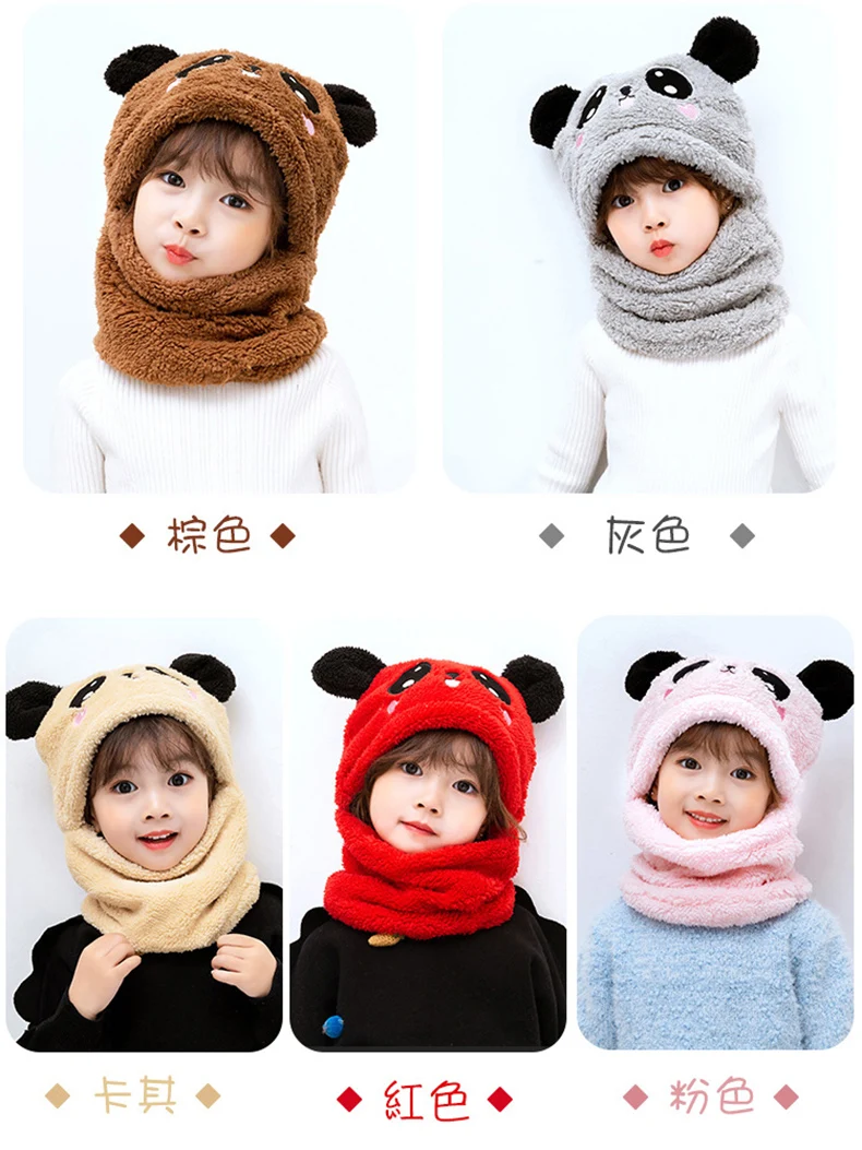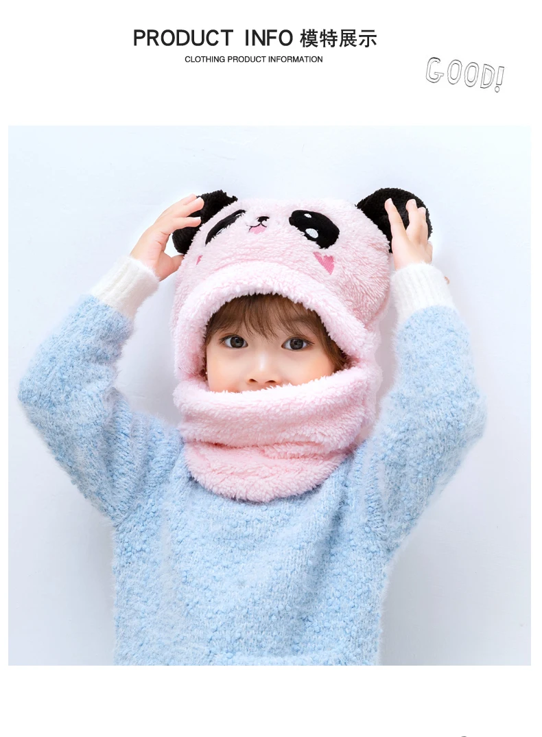Детская шапка с рисунком, шарф, комплект из двух предметов, с капюшоном, на осень и зиму, шапка с милым Кроликом, пандой, зимний теплый пушистый плотный шарф на шею