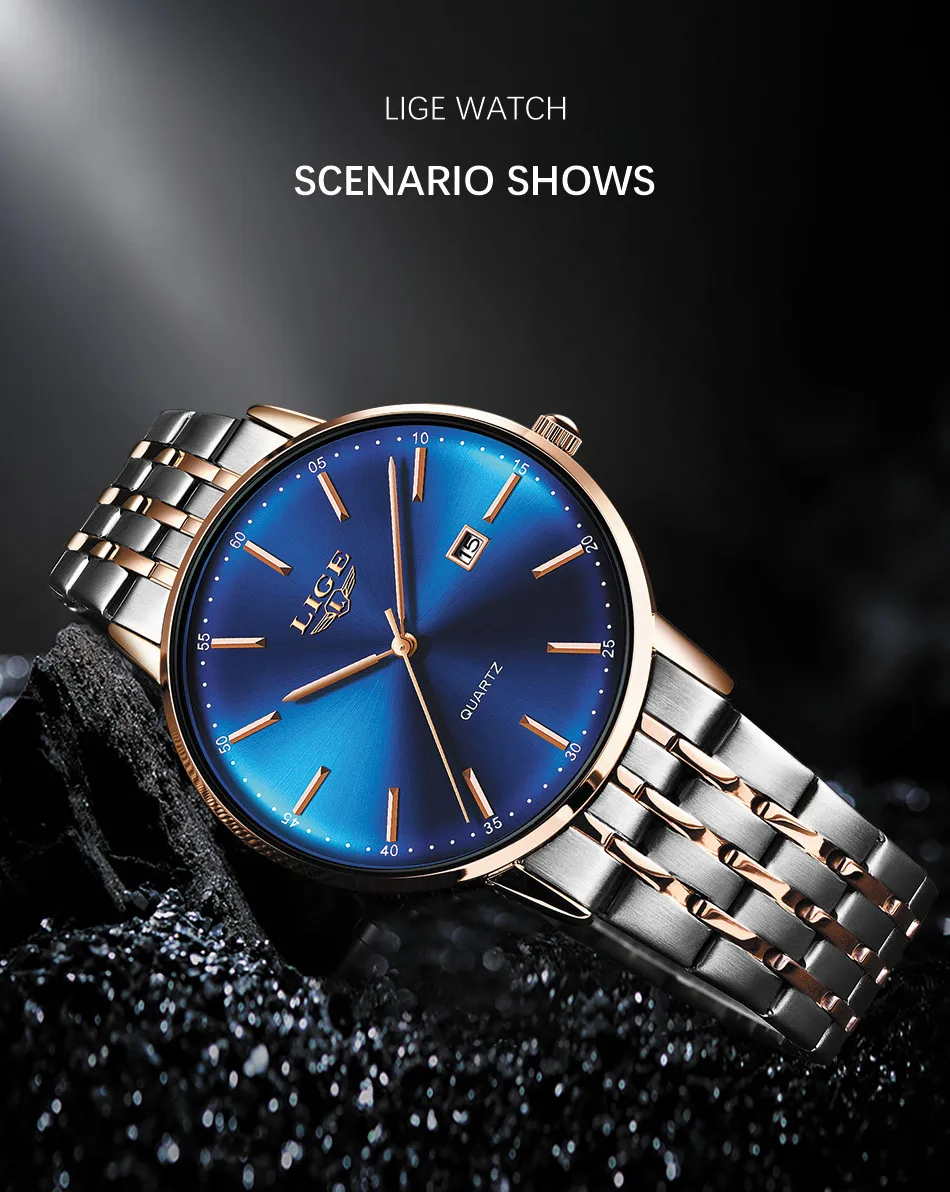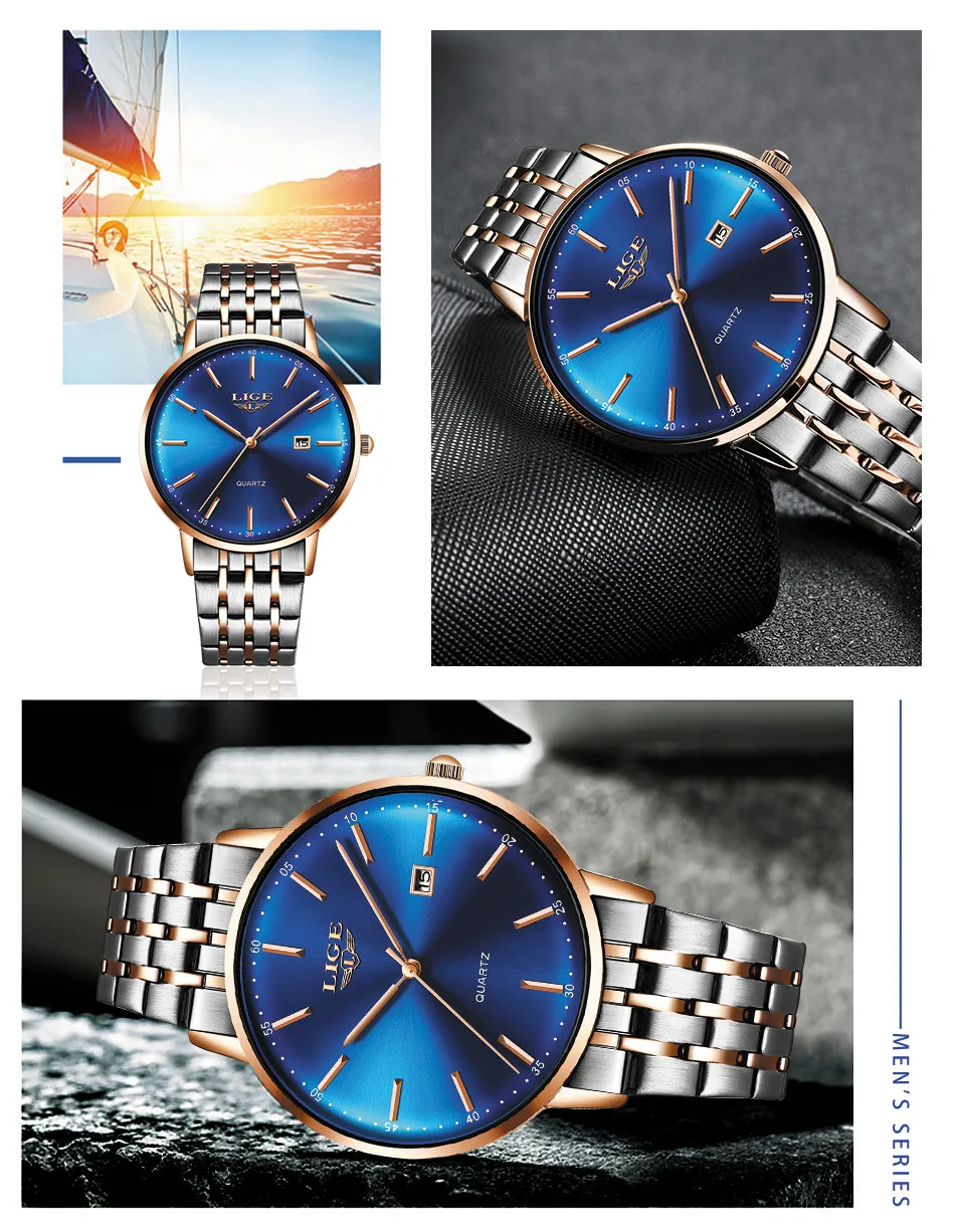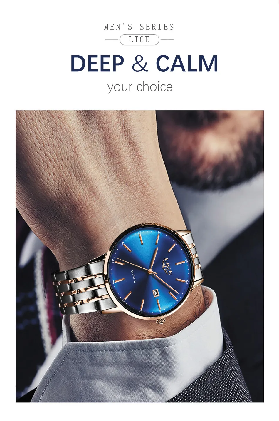 LIGE кварцевые мужские часы из нержавеющей стали топ бренд класса люкс модные мужские часы ультра тонкие Бизнес наручные часы Relogio Masculino