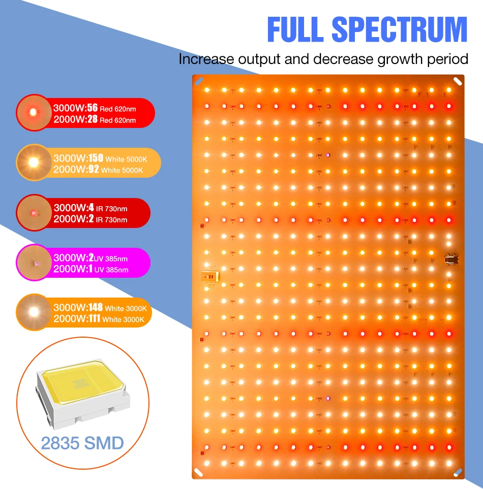 Светодиодный мощность: 210X7.14W ≈ 1500W / 235X8.55W ≈ 2000W / 360X8.33W ≈ 3000W