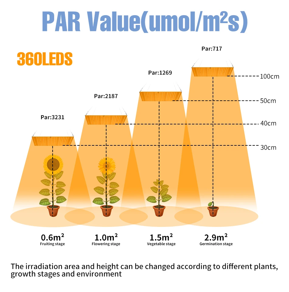 * Полный спектр, красный светильник (620нм) способствует фотосинтезу, синтезирует растительные углеводы, ускоряет цветение и фрукты; Инфракрасный светильник (730нм) оказывает эффект растительного оттенка, позволяет растениям быстро расти до высоты; Ультрафиолетовые лучи (385нм) препятствуют росту растений, стимулируют производство растительных антоциановых пигментов, способствуют окраске растительных фруктов и лепестков, И улучшение качества; Теплый белый и белый светильник имеет функцию светильник ing, имитирующий солнечный светильник, полный спектр, стимулируя рост растений и обеспечивая светильник, необходимый на всех этапах роста растений.