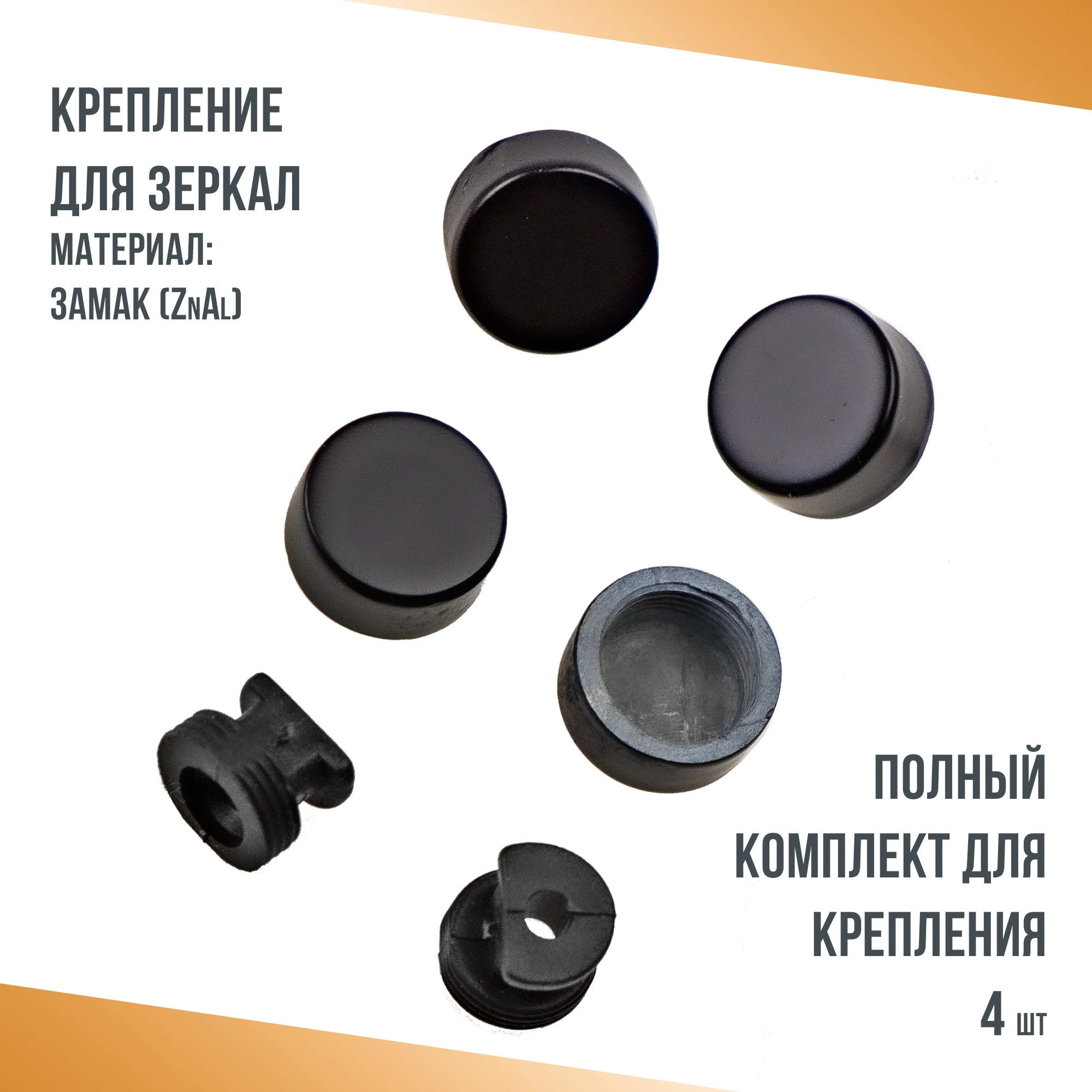 Единиц в одном товаре: 4; Материал: Алюминий, Пластик, Сталь; Диаметр, мм: 17; Ширина, мм: 17; Тип: Крепление для зеркала; Страна-изготовитель: Китай; Партномер: 1; Цвет: Черный