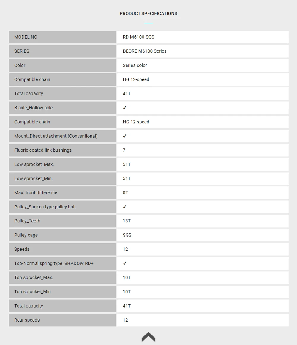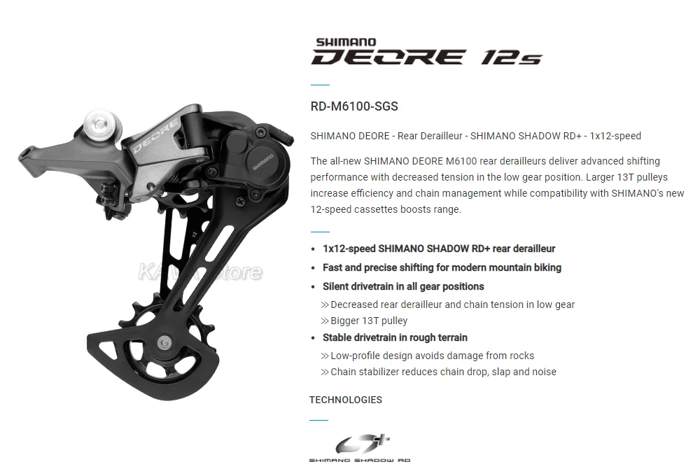 -Все новые задние переключатели SHIMANO DEORE M6100 обеспечивают улучшенную производительность при переключении с уменьшенным напряжением в низком положении шестерни. Более 13 лет шкивы повысить эффективность и управление цепями, в то время как Совместимость с SHIMANO в виде бабочек, новинка, 12-скорость кассеты Увеличивает радиус действия.