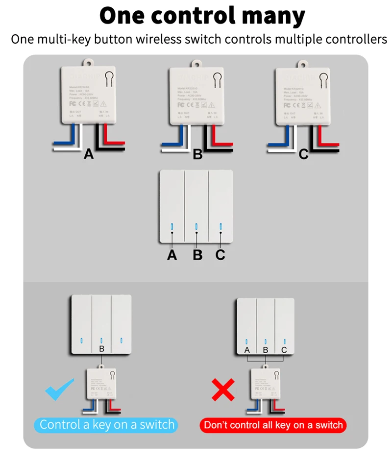 Беспроводной смарт-выключатель, светильник RF 433 МГц, настенный выключатель с дистанционным управлением, мини-релейный приемник, 220 В, светодиодный светильник, вентилятор