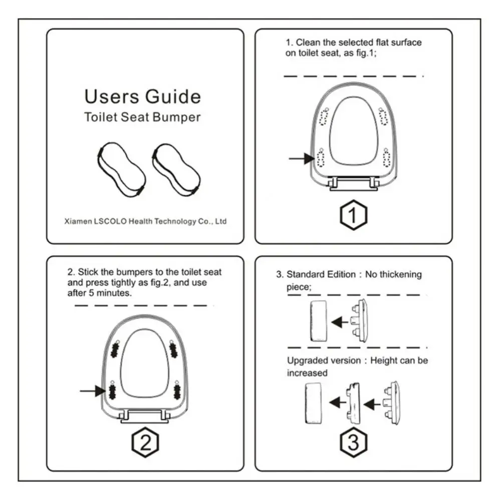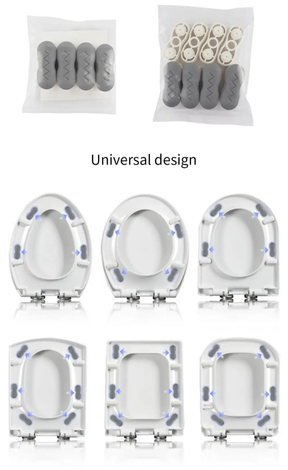 Простая установка: чистое кольцо для сиденья унитаза, сохраняет сухость, Оторвите клейкую ленту, прикрепите бампер к кольцу для сиденья унитаза, нажмите, чтобы обеспечить прочное сцепление