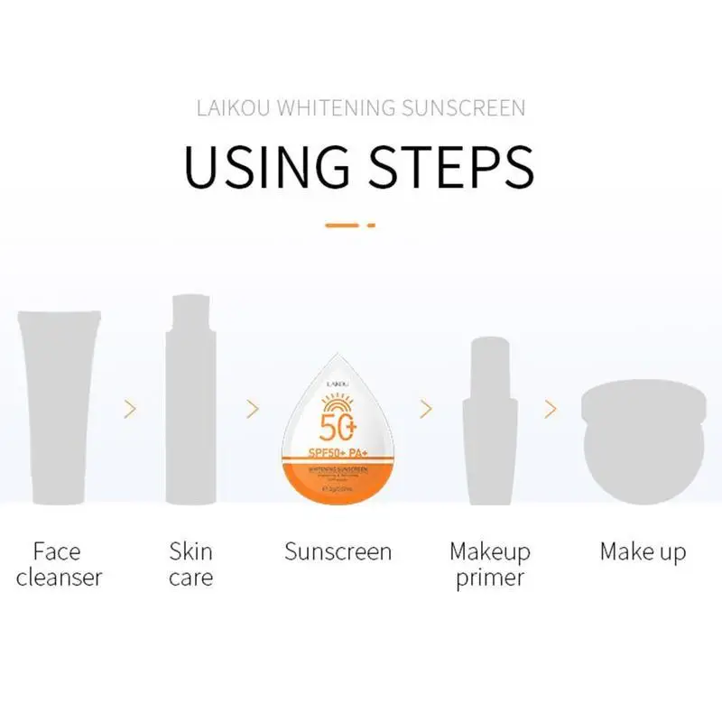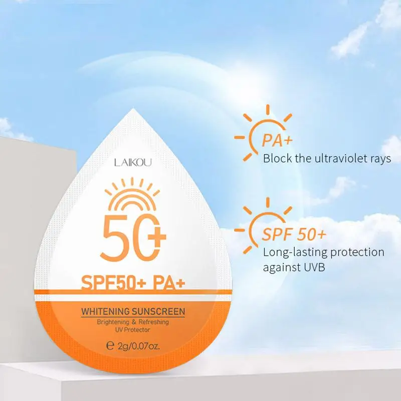 1. Отбеливающий солнцезащитный крем может заметно изолировать кожу от пыли и повредить косметику в воздухе. 2. Он может образовывать защитную пленку на поверхности кожи, блокировать ультрафиолетовые лучи, осветлять цвет лица и сделать вашу кожу яркой и увлажненной. Этот солнцезащитный крем нежирный и легко впитывается, что делает его хорошим выбором для выхода во время сильного воздействия солнца.