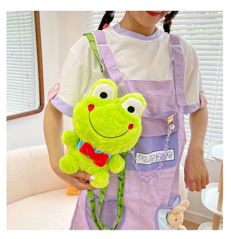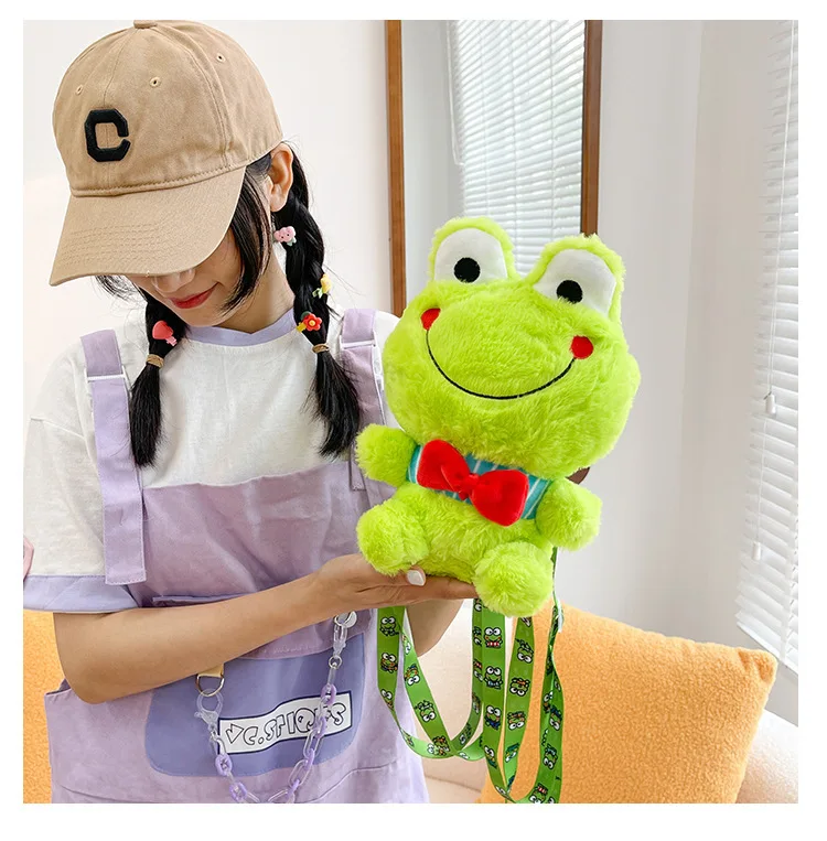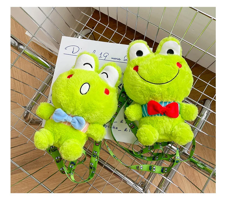 Корейский Вер. Плюшевый рюкзак с рисунком зеленой лягушки, забавная плюшевая игрушка с большими глазами, зеленая лягушка, сумка-мессенджер, сумка на плечо, милый подарок для детей