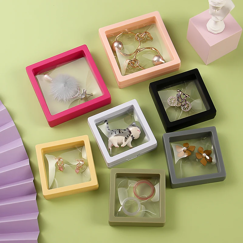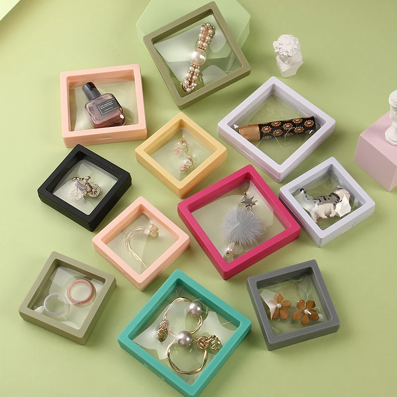 Витрина для ювелирных изделий коробки Тени 10 видов цветов/комплект яркого цвета, 3D плавающий монет, кольцо для ключей, брелок держатель защиты драгоценного камня Презентация чехол