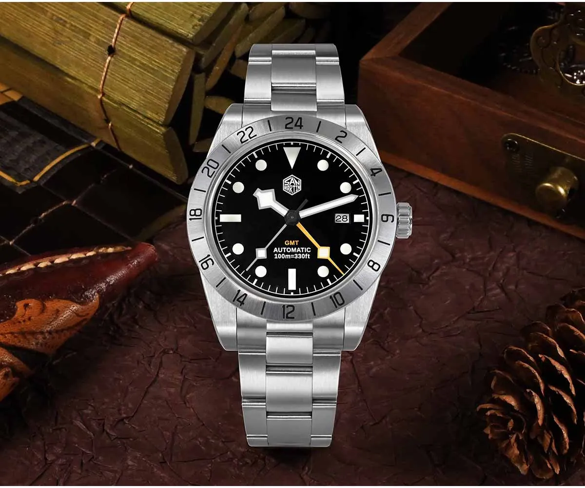 Новый 39 мм BB GMT BGW-9 синий свет + дата Windows