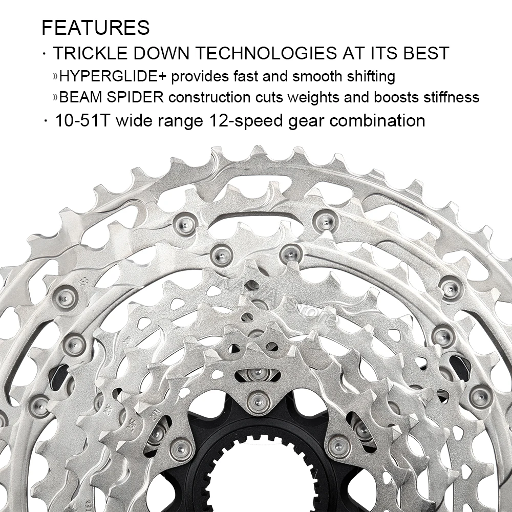 Кассета Shimano Deore CS-M6100 отличается технологией Hyperglide +, которая обеспечивает высокую передачу, точность и гладкость при перемещении вверх и вниз и способствует чрезвычайно тихой подъездной дорожке. 12-скорость кассета разработан специально для микро-шлицевой система кассеты охватывает широкий ассортимент колес от 10 до 51 передаточное отношение.