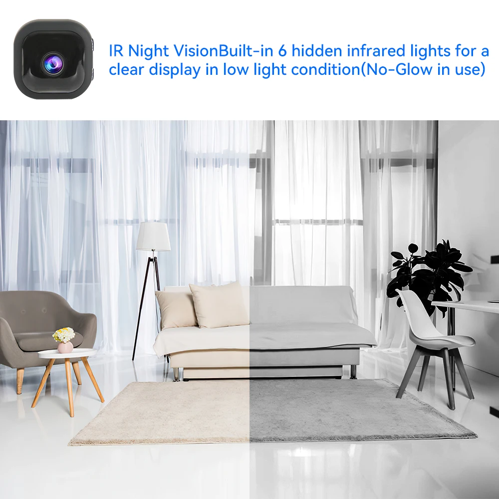 Ночное и тревожное нажатие, эти функции являются основой для этой внутренней камеры безопасности. Вы можете не только увидеть вещи в темноте