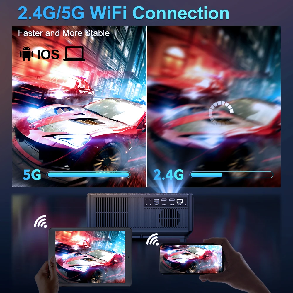 Гладкий 5G проектор wifi без задержек при проектировании или воспроизведении игр, легко погружает вас