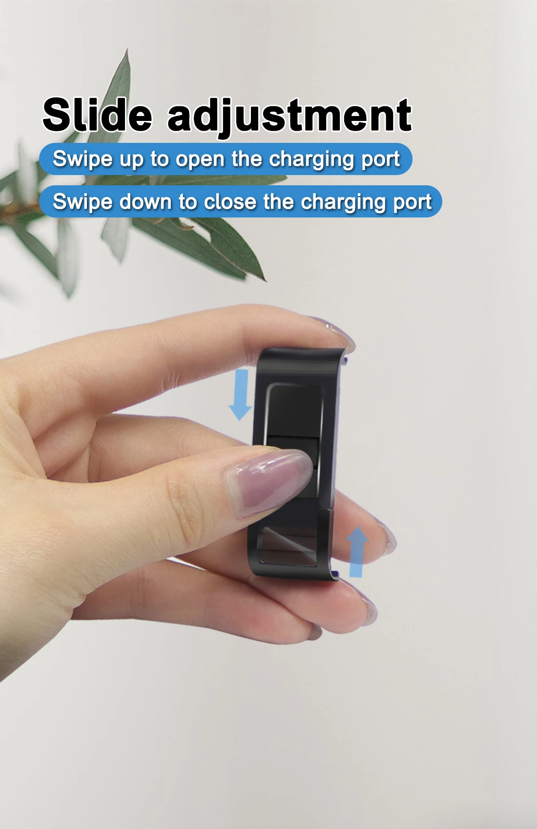 Проведите вверх, чтобы открыть порт зарядки, проведите вниз, чтобы закрыть порт зарядки.