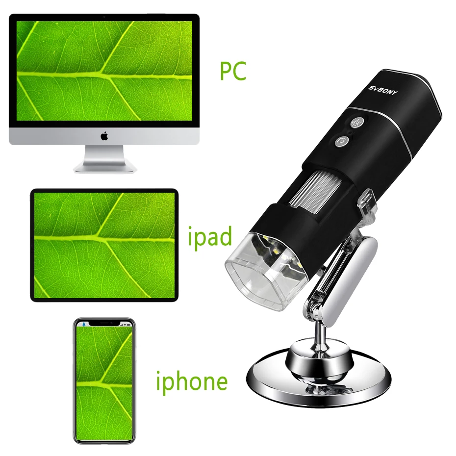 1. Это беспроводное портативное 50X-1000X бесступенчатая зум цифровая камера с Wi-Fi для микроскоп. Его можно использовать вместе с вашим мобильных устройств на базе Android и ios. Он может передавать по беспроводной сети в режиме реального времени объектив 33 футов. Он совместим с компьютеров под управлением ОС Windows. SVBONY обеспечивает бесплатное мобильное приложение для загрузки и USB кабель для передачи данных. Загрузите приложение бесплатно с официального доступен для загрузки по адресу, вы сможете просматривать изображение с микро-мира прямо на вашем смартфоне или планшете, таким образом вы сможете брать их с собой в любом месте и в любое время и в любом месте.