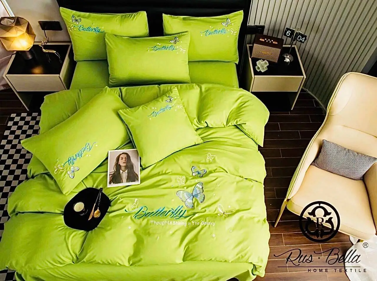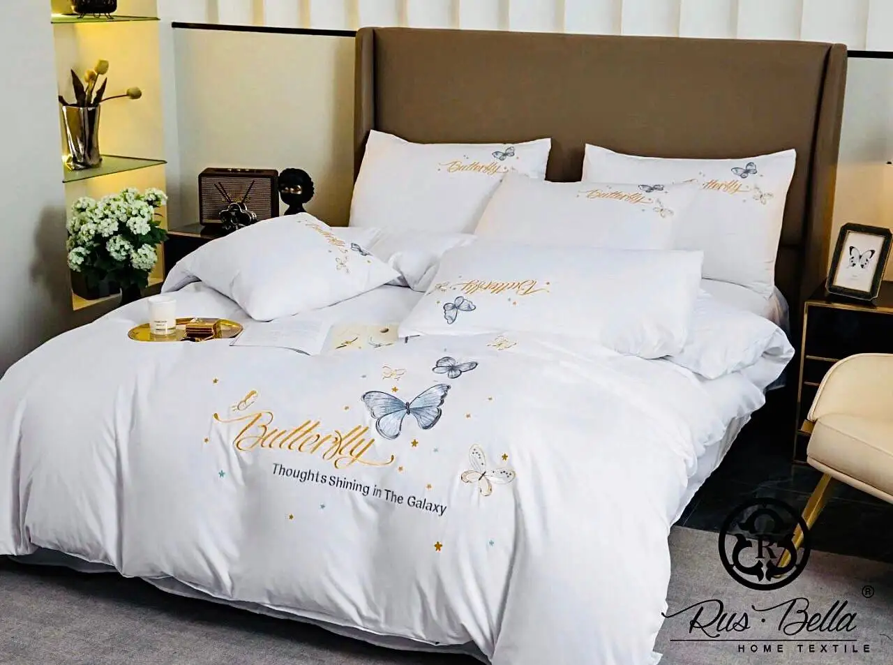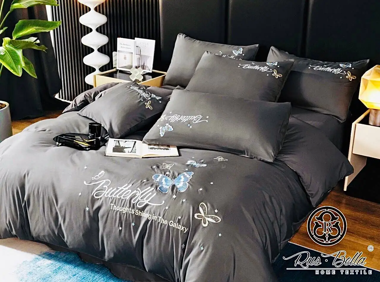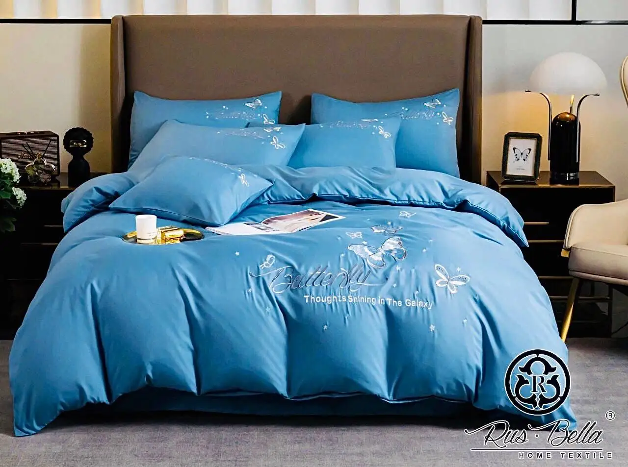 Постельное белье изготовлено из сатина (95% хлопок, 5% вискоза). Сатин, благодаря своим свойствам, считается лучшей тканью для постельного белья. Он изготавливается из отборного натурального хлопка путем особого (двойного) переплетения тонких крученых нитей. В сравнении с другими тканями из хлопка, например, бязью и поплином, сатин, обычно, выигрывает. Он имеет лучшие показатели по мягкости и эластичности. Блеск сатина и его тактильные ощущения, приближают сатин к шелку и другим тканям класса люкс. Сатин обладает способностью сохранять первозданный вид даже после двух-трех сотен стирок.