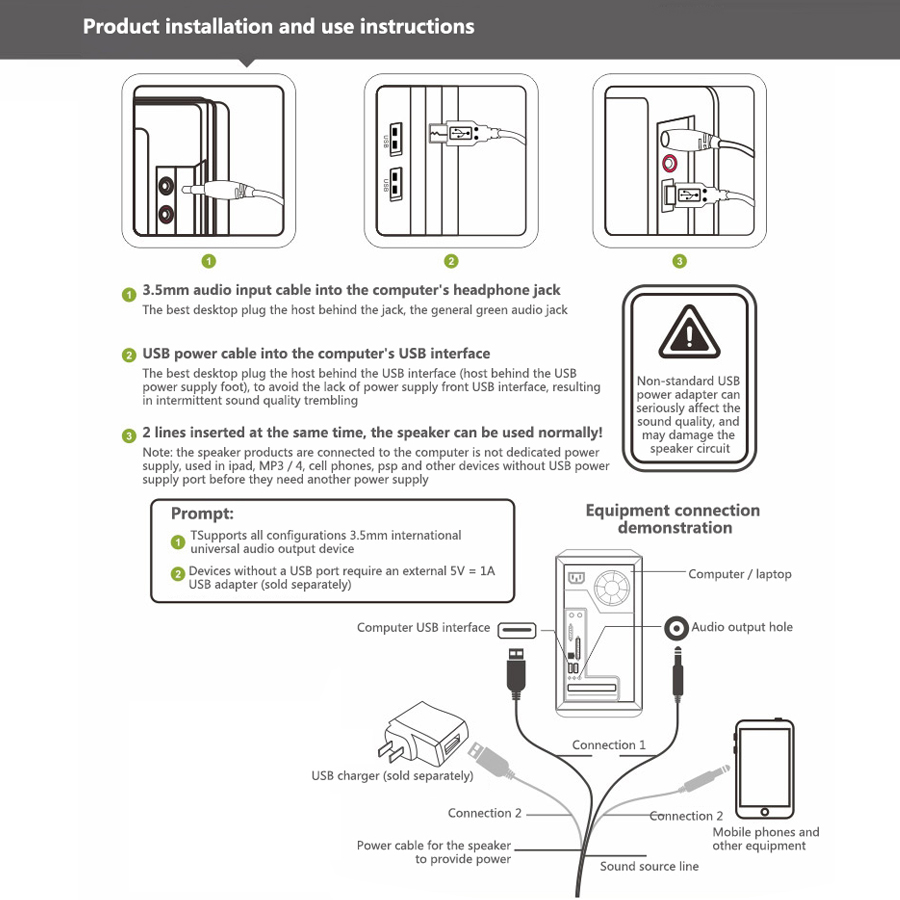 -3,5 мм Интерфейс способы подключения, может использоваться как компьютер аудио оборудование, который широко совместим со смарт-устройств.