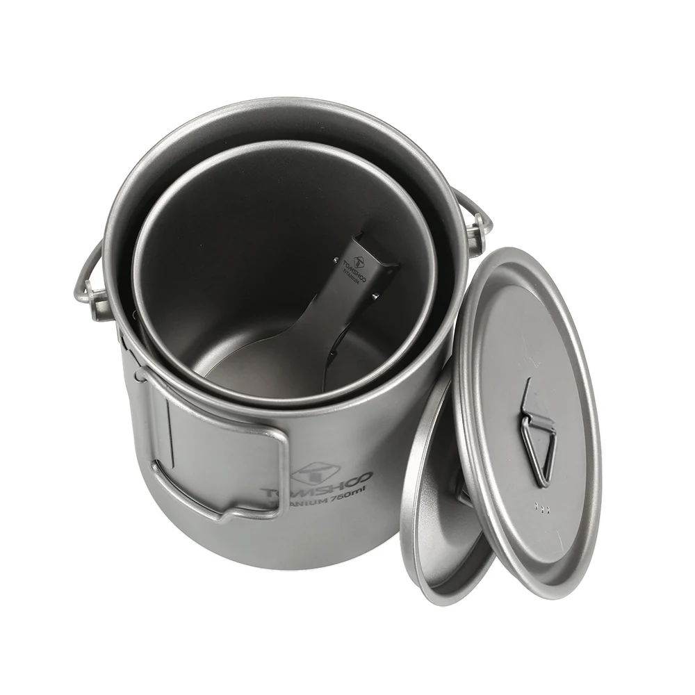 Это титановый набор из трех частей, в который входит кастрюля на 750 мл, чашка на 450 мл и свинка. Полный комплект изготовлен из прочного Титания, легкий и устойчивый к коррозии. Упакуйте весь комплект в прилагаемый мешок для хранения и вещи в рюкзак, ваша поездка будет более удобной и приятной.