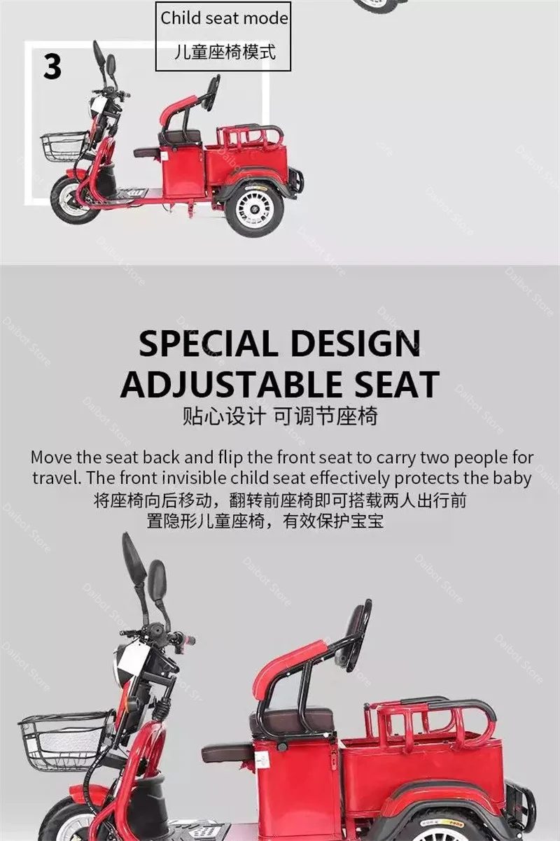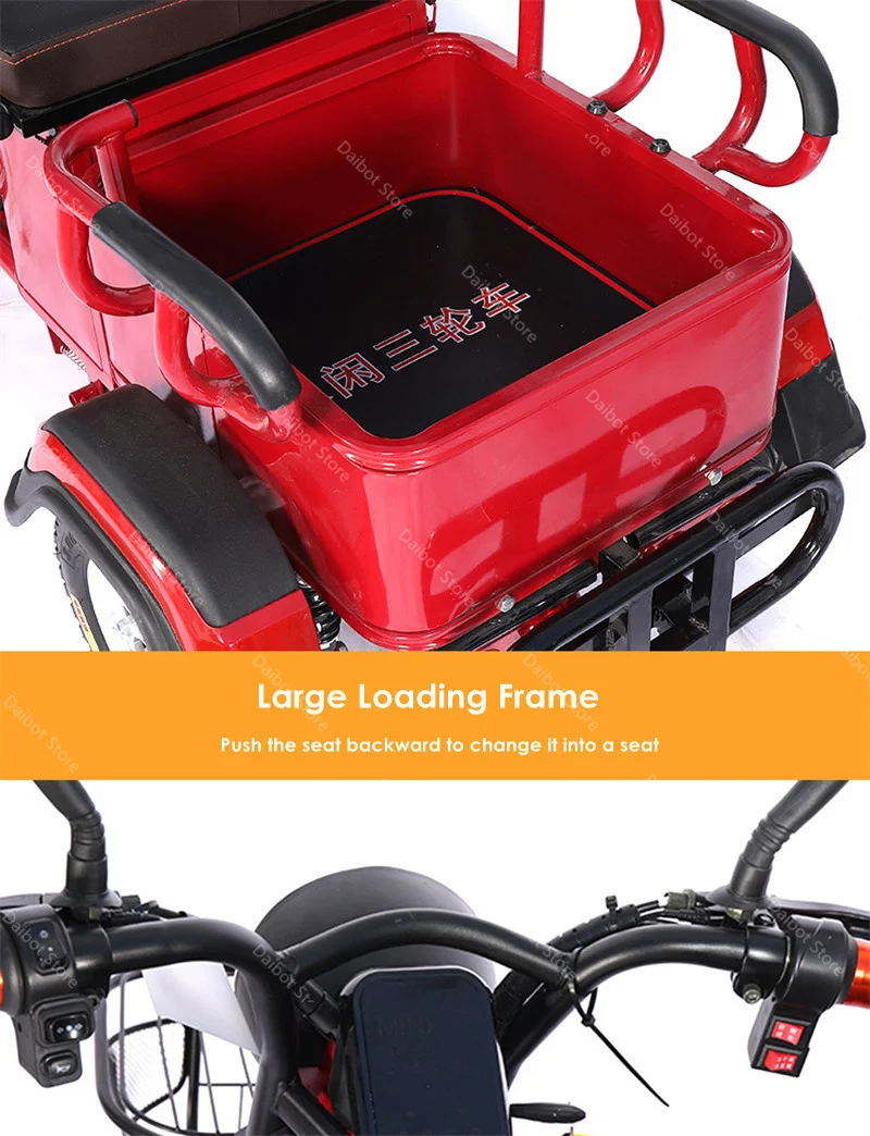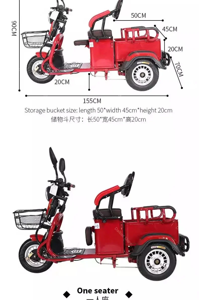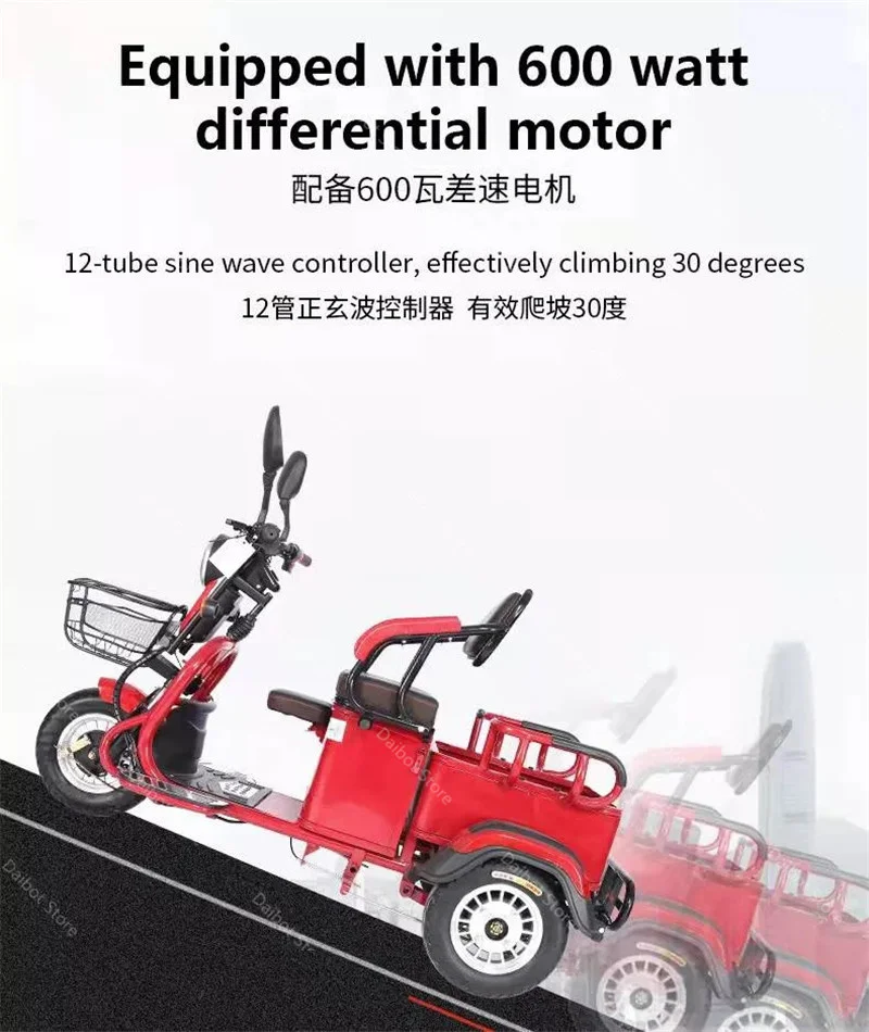 Взрослые электрические трехколесные велосипеды 3-х колесный Электрический грузовой велосипед 48V 600W Dual Drive Электрический скутер, способный преодолевать Броды для пожилого возраста красного цвета