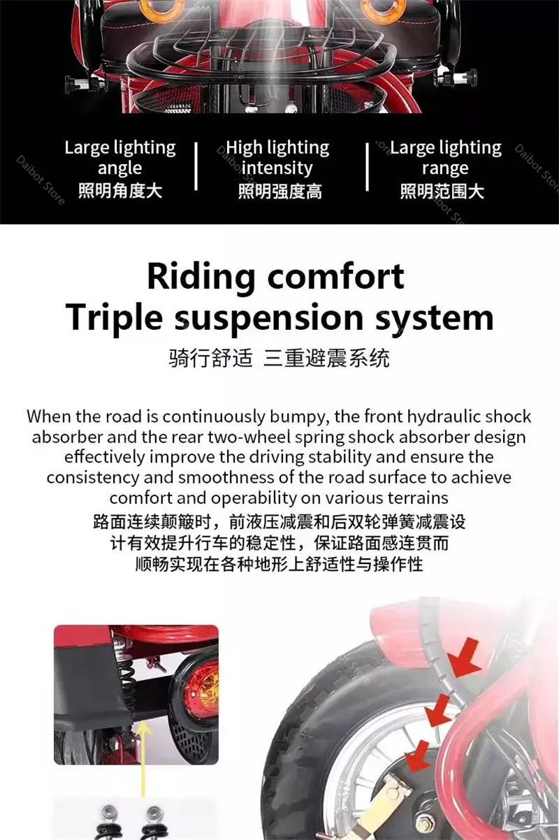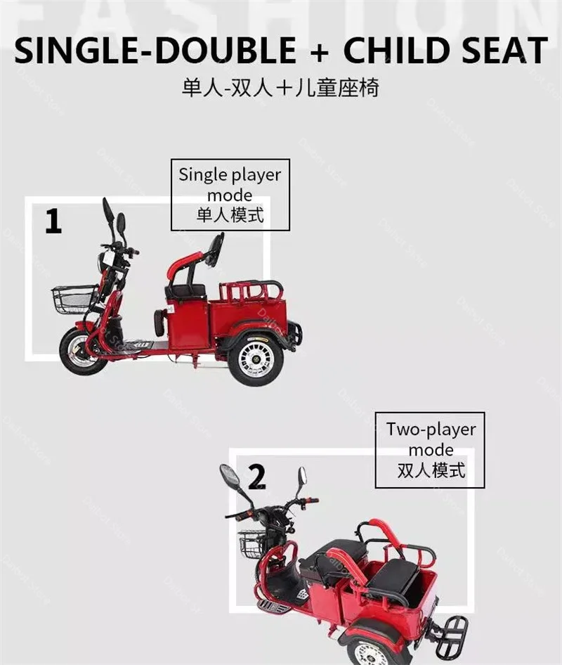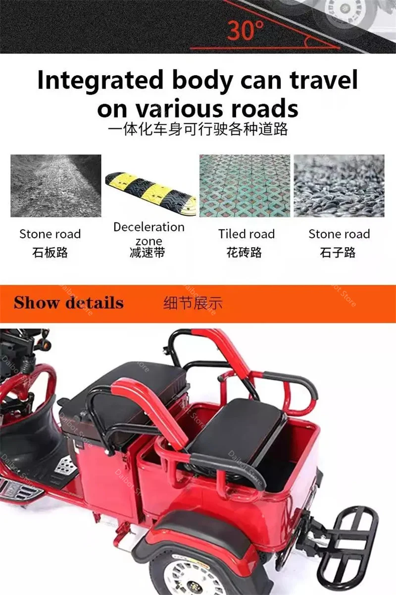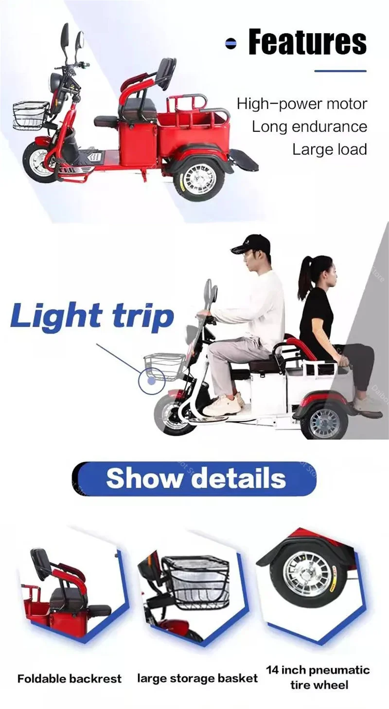 Взрослые электрические трехколесные велосипеды 3-х колесный Электрический грузовой велосипед 48V 600W Dual Drive Электрический скутер, способный преодолевать Броды для пожилого возраста красного цвета