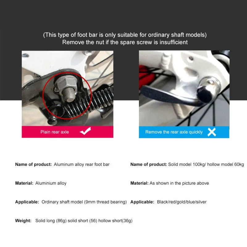 5: велосипедные подножки обычно устанавливаются на заднюю ось и переднее колесо велосипеда, подходит для 3/8 дюймовых осей обычных велосипедов, горных велосипедов, дорожных велосипедов, трековых велосипедов и т. д.