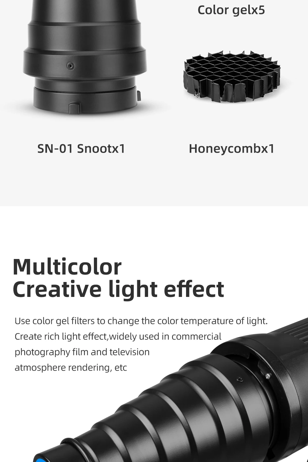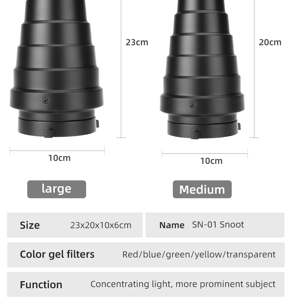 By Snoot flash to avoid adverse effects projection screen, especially in the face of background clutter shooting, Snoot is very important, sometimes in order to achieve the purpose of controlling the background or foreground of light, illuminating only Snoot pre-determined target shooting