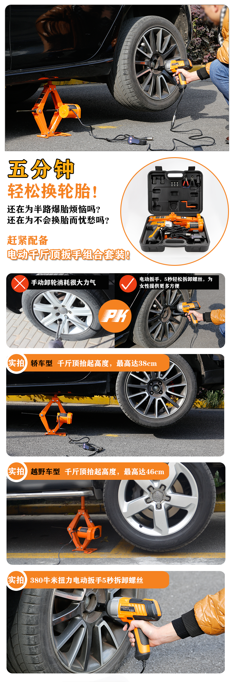 Электрический ударный ключ на 12 В и усиленный Электрический домкрат 2T