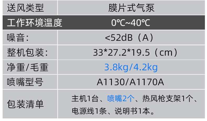 Amount of hot air: 23L/min (MAX)