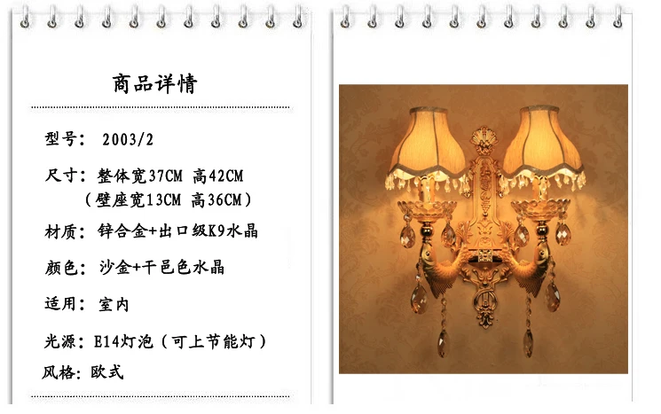 Материал:Основание из сплава с покрытием и дужки + тканевый абажур + роскошный кристалл K9