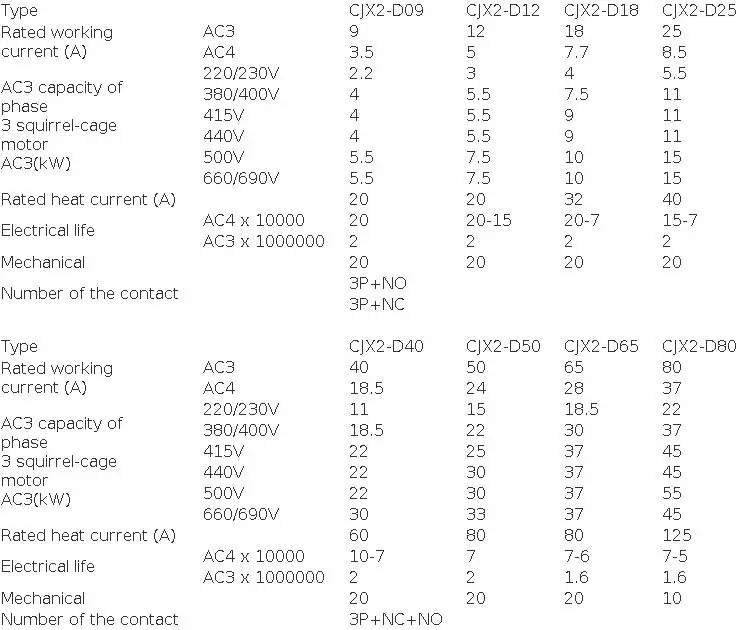 CJX2-D series AC contactor is suitable for using in the circuits up to the rated voltage 660V AC 50Hz