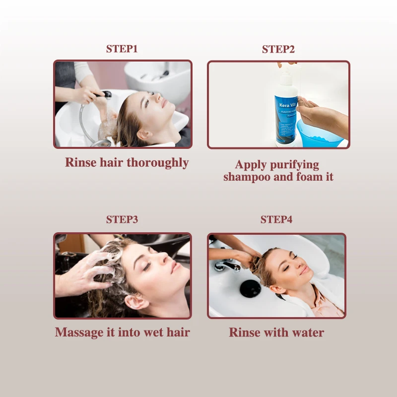 2. Выньте KeravitОчищающий шампуньНанесите на кожу головы и натрите ее, чтобы получить богатую пену.