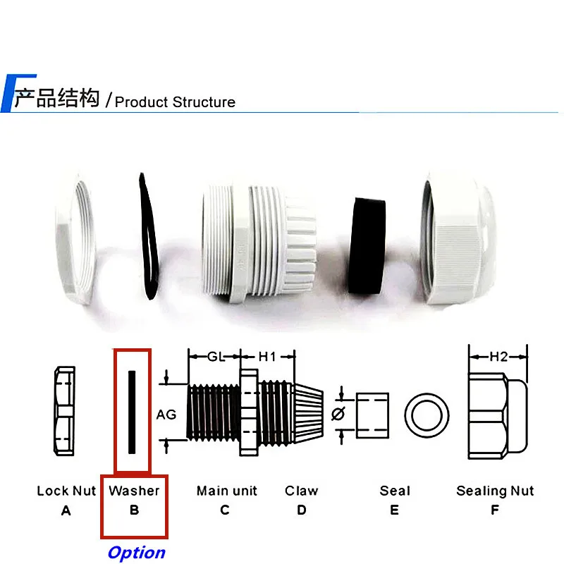Материал: изготовлен из нейлона UL 66, 94V-2 и плотного кольца из резины.