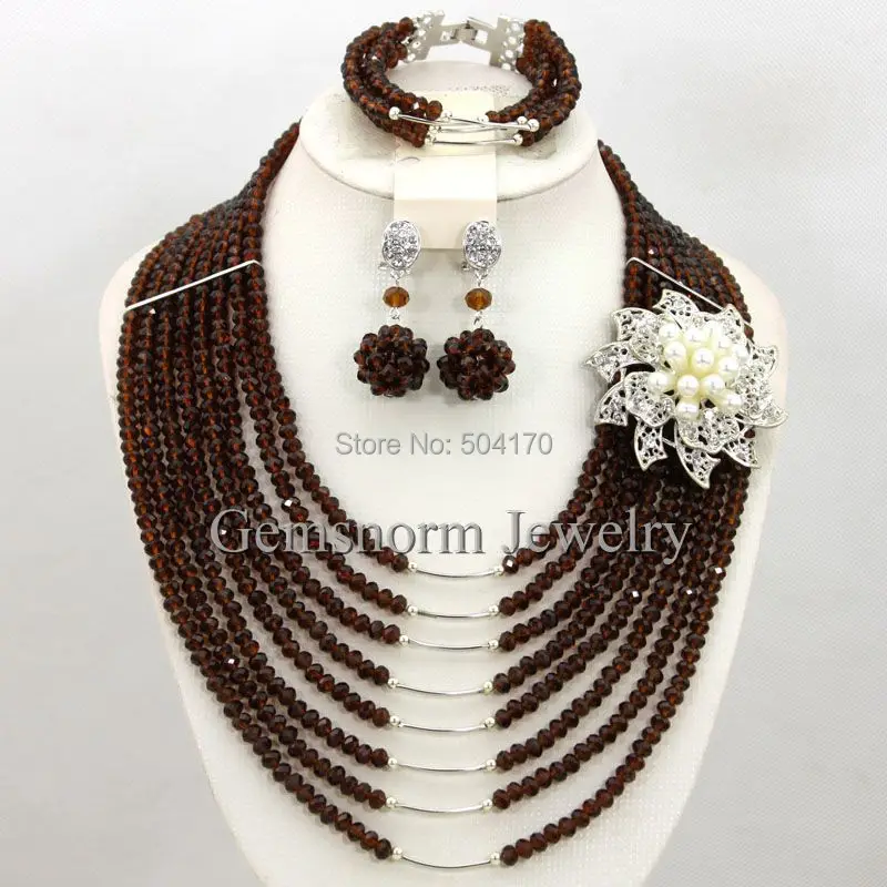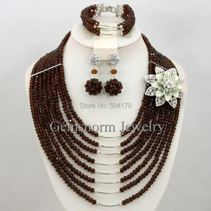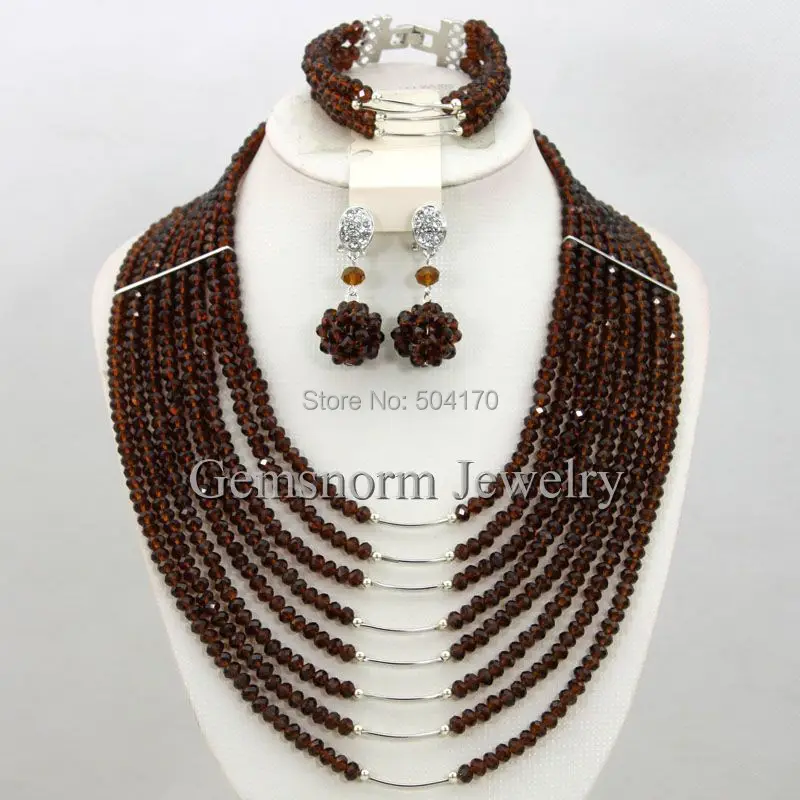 Чудесные 12 рядов нигерийские Свадебные африканские бусины ювелирный набор красный/коричневый кристалл Бусины Ювелирный Набор Бесплатная доставка GS107