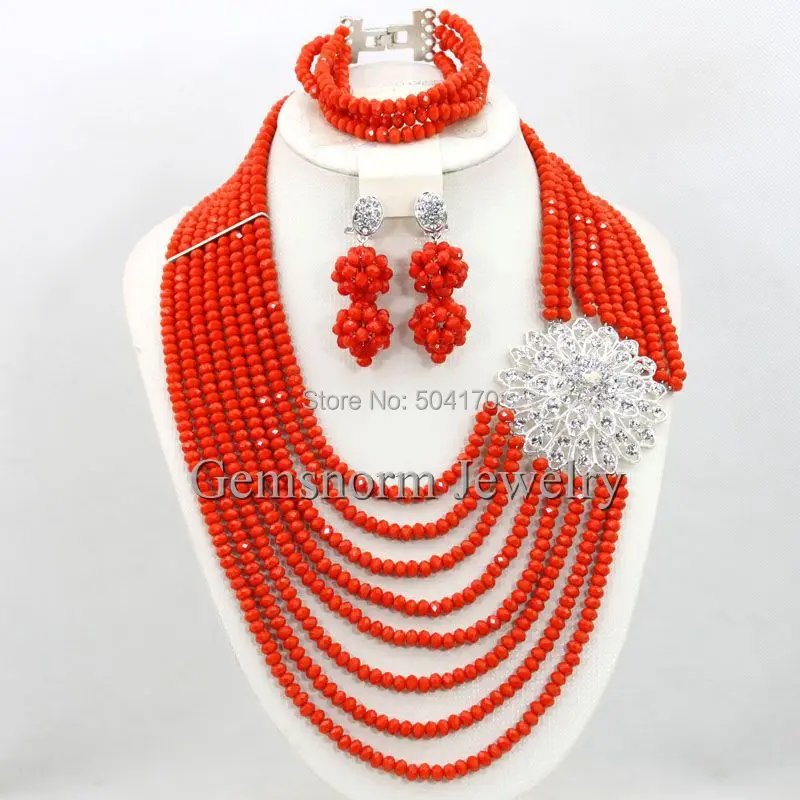 Новейшая мода, ярко-красные Африканские свадебные бусы, ювелирный набор, популярные нити, индийский свадебный комплект ювелирных изделий, бесплатная доставка GS289