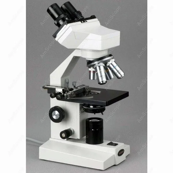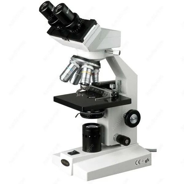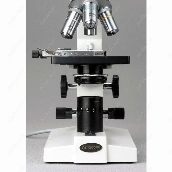 45 Degree Inclined 360 Degree Swiveling Sliding Binocular Head Mechanical Stage with Stain Resistant Finish for Easy Slide Gliding Control Separate Coarse & Fine Focusing Fully Coated Optical System with High Resolution Crystal Clear Sharp Images High Quality Professional Grade Microscope Great for Clinics, Vets, Doctors, Students Four Levels of Magnification: 40X, 80X, 100X, 200X, 400X, 800X,1000X & 2000X Upward Stage Stopper to Protect Slides and Objectives Abbe Condenser with Iris Diaphragm & Filters Built-In Illumination System Focusing Control Knobs on Both Sides Four DIN Achromatic Objectives Two Sets of Eyepieces, WF10X & WF20X, Included Full Optical Glass Elements All Metal Mechanical Components Precise Ground Glass Lens Adjustable Interpupillary Distance Adjustable Diopter on Oculars Solid Metal Frame Construction with Stain Resistant Enamel Finish Spare Bulb, Fuse and a Bottle of Immersion Oil Included Manufactured under ISO 9001 Quality Control Standard Excellent Five (5) Year Factory Warranty