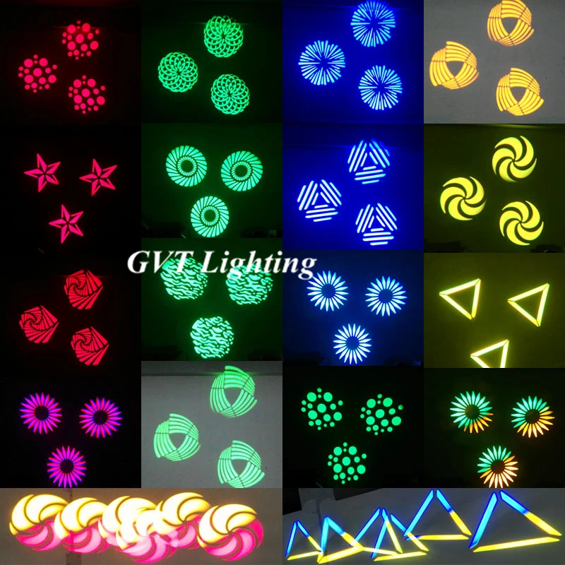 5) фиксированный gobo: 8 gobos + белый, Gobo вращающийся CW и CCW от медленного до быстрого), gobo встряхивание.