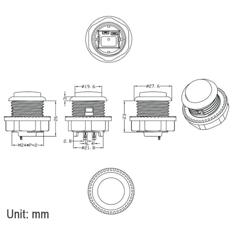 Arcade Game Screw in Welded Style 24mm Strengthened Round Convexity Push Button with Microswitch for NAME JAMMA