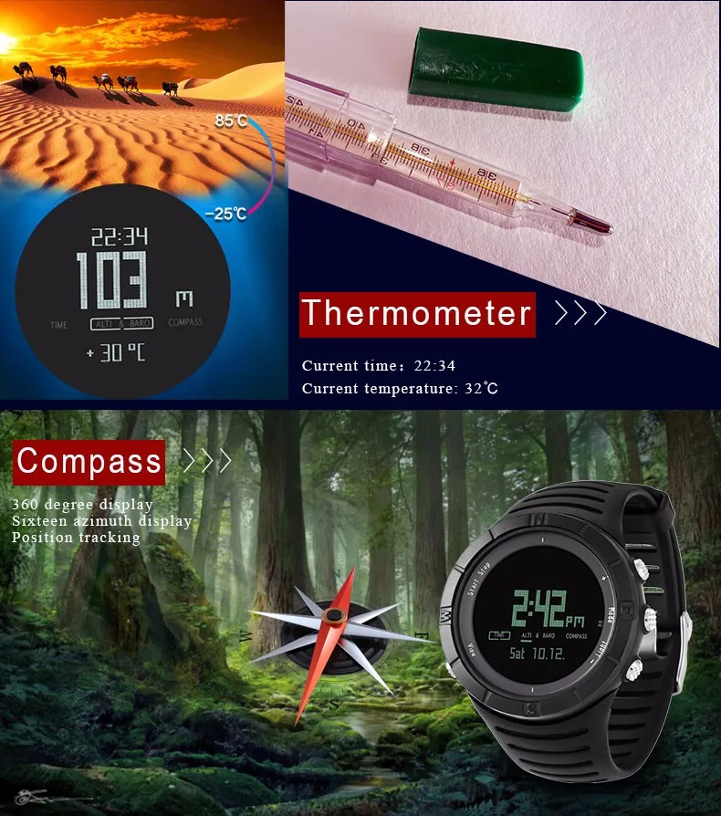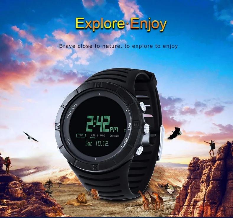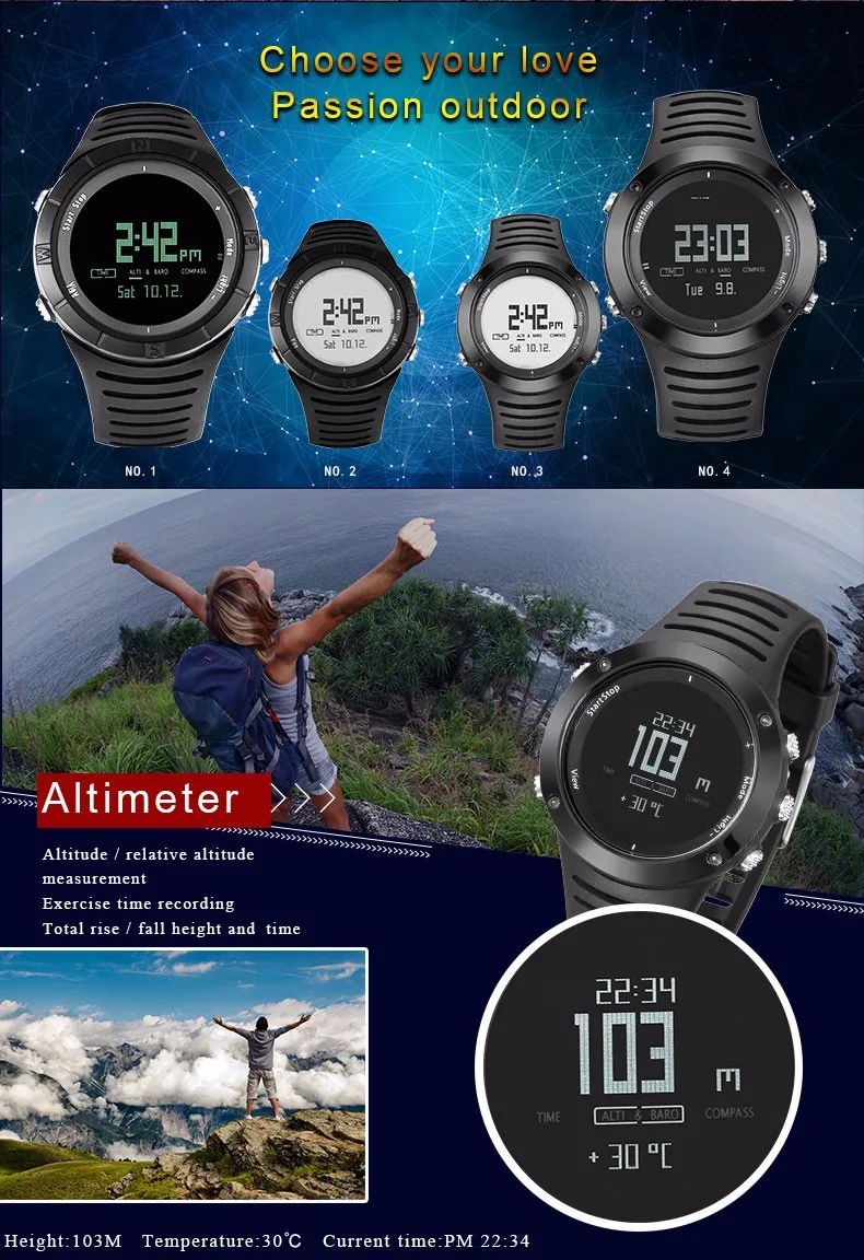 Spovan Брендовые Часы для улицы цифровые спортивные мужские/женские мужские Хронограф/барометр/высотомер/термометр/компас наручные часы Relogio