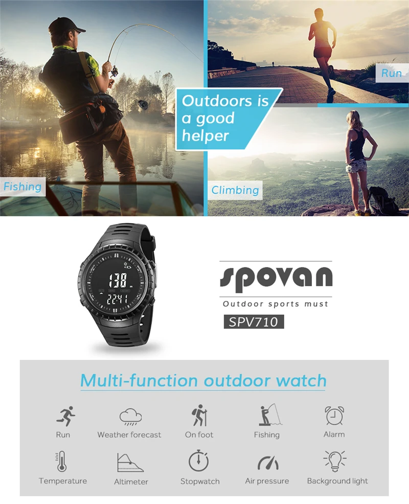 SPOVAN цифровые часы мужские водонепроницаемые барометр альтиметр термометр Секундомер спортивные наручные часы для мужчин Relogio Masculino