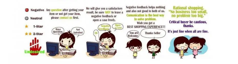 Пожалуйста, свяжитесь с нами перед любым нейтральным или отрицательным отзывом; мы постараемся сделать все возможное, чтобы решить любую проблему.