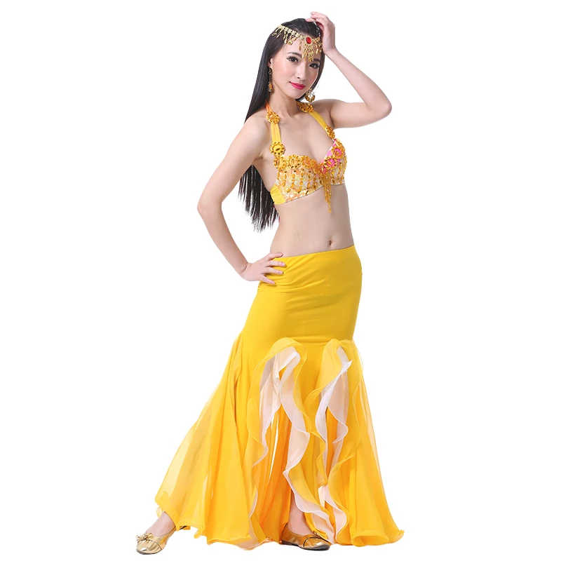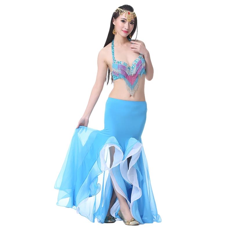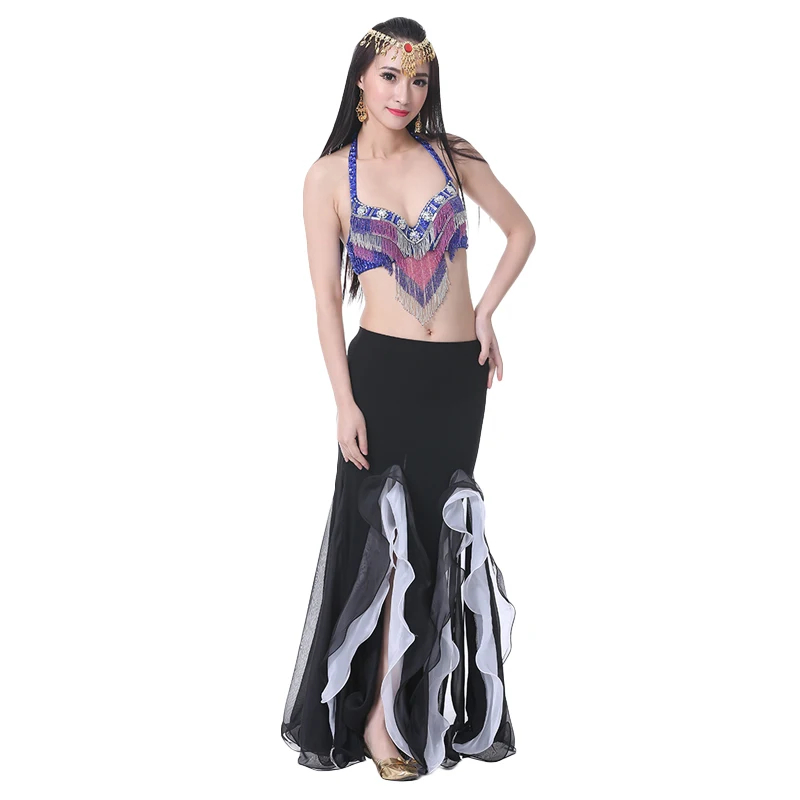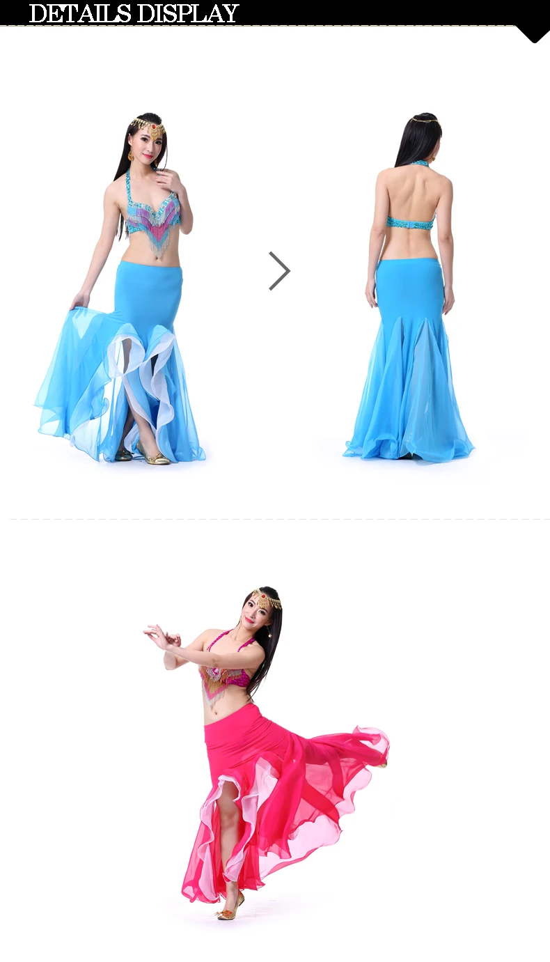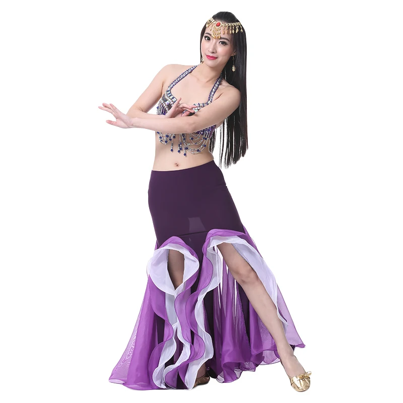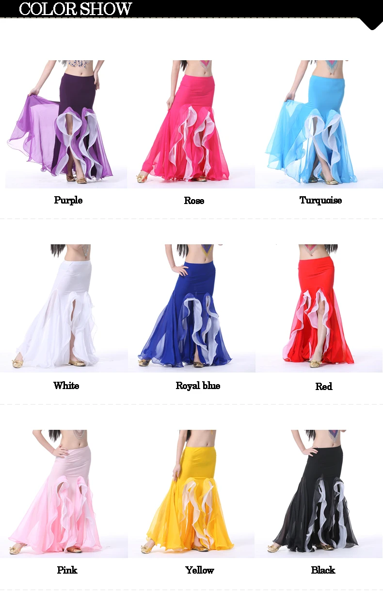 Новинка, костюм для танца живота, Хрустальная хлопковая двойная сексуальная юбка с разрезом, юбка для танца живота с оборками для восточной индии, танцевальное платье, 9 цветов