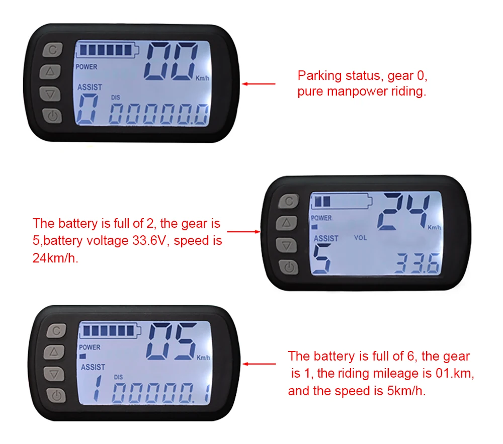 1. Нажмите кнопку «ON» в течение длительного времени: 5-7 секунд, затем можете открыть ЖК-дисплей2. Отрегулируйте номер настройки ЖК-дисплея в соответствии с вашим колесом двигателяОписание интерфейса: