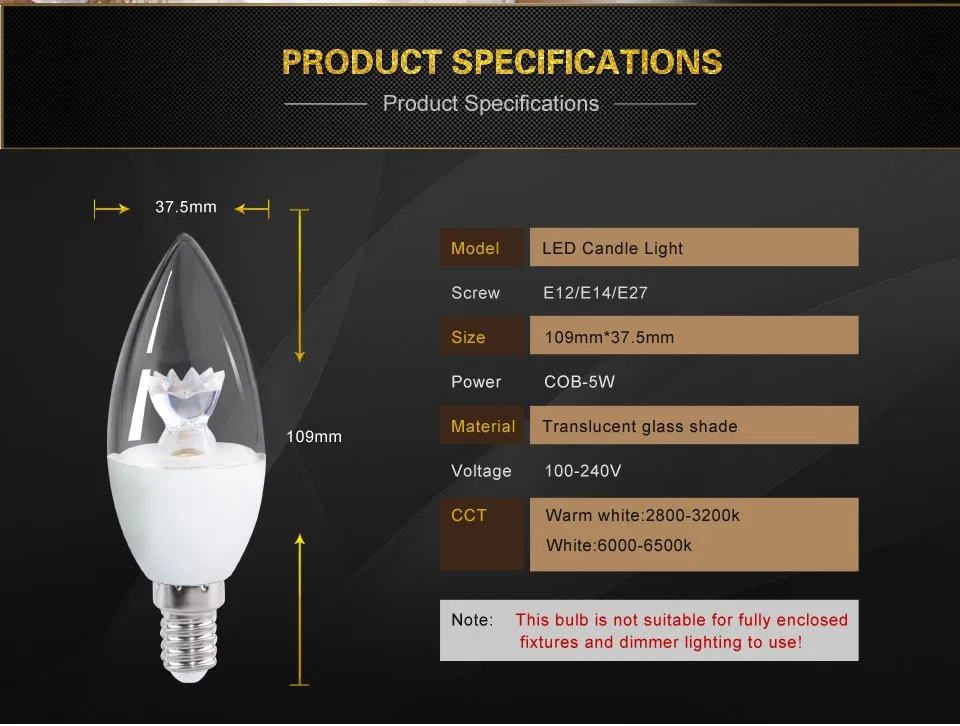 1 шт. E27 E14 E12 Led свеча энергосберегающая лампа 100-240 В 5 Вт COB Velas Led украшение дома 110В 220В Светодиодная лампа
