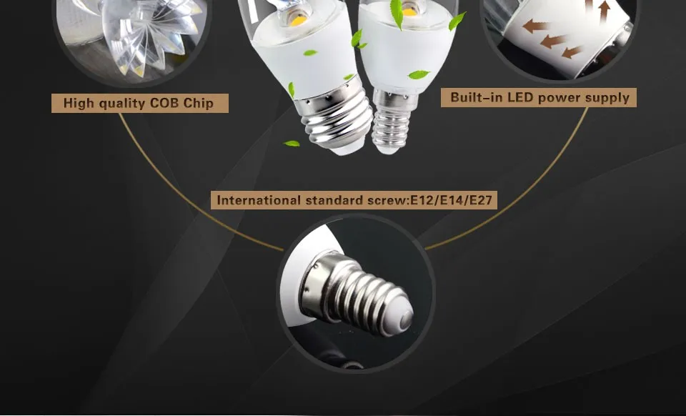 Мы обещаем вам: 1) 100% сертификаты FCC CE RoHS LVD EMC; 2) 100% отсутствие мерцания; 3) 100% реальная мощность и люмен; 4) 100% бренд Foxanon 5) 100% гарантия на три года Характеристики: Тип цоколя: E27/E14/E12 Напряжение: AC100V-240V Материал: Поликарбонат + алюминий Мощность: 5 Вт Люмен: Тип СВЕТОДИОДА: COB (золотой чип, кронштейн из чистой меди) CRI:> 85 Угол луча: 360 ° Срок службы: 60 000 часов Сертификаты: FCC CE RoHS LVD EMC Цветовая температура: теплый белый (2800-3200 K); белый (6000-6500 K)