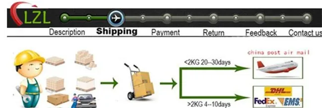 1. Если ваш заказ меньше 2 кг, мы отправим черезЗаказная Авиапочта России/PostNL/Почта Китая/ePacketСогласно вашей стране. Доставка занимает 15-35 дней и более.