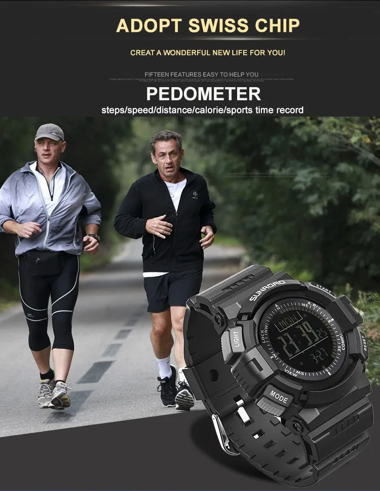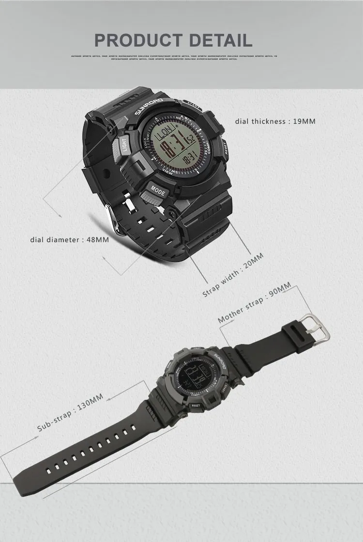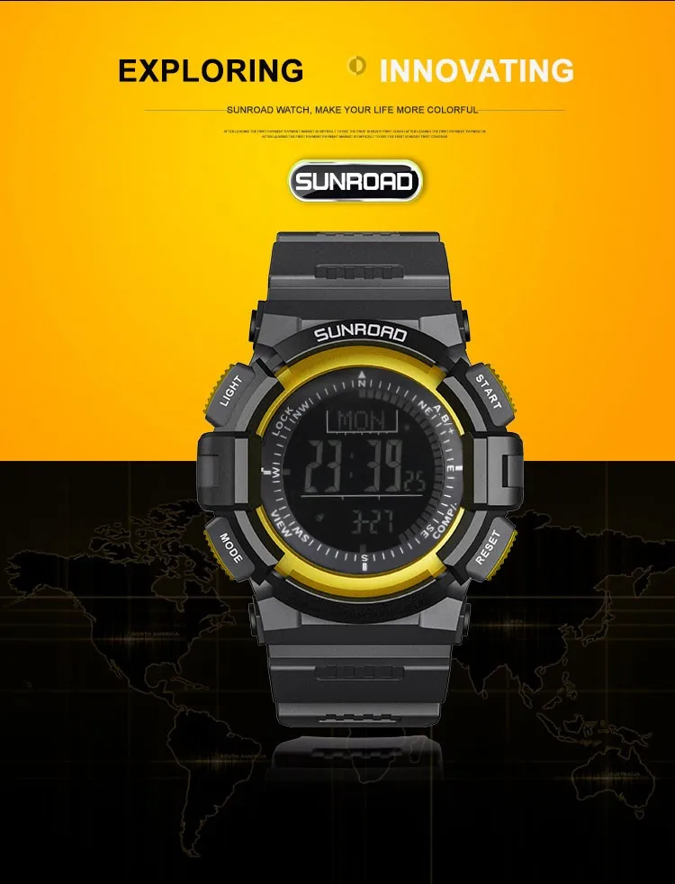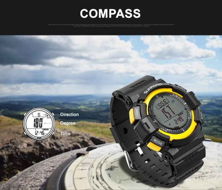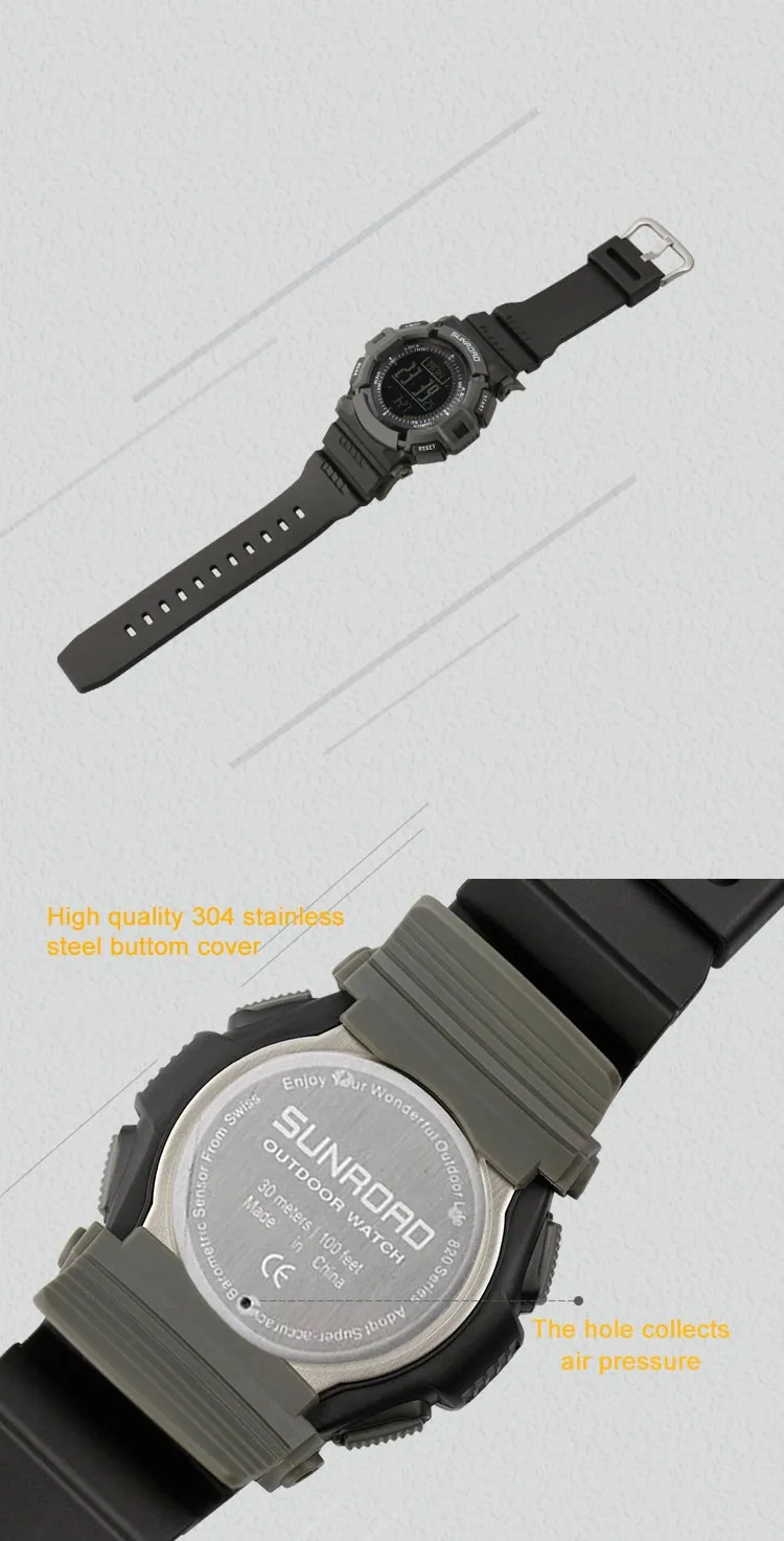 SUNROAD мужские часы водонепроницаемые цифровые высотомер Компас секундомер барометр шагомер спортивные наручные часы Relogio Masculino