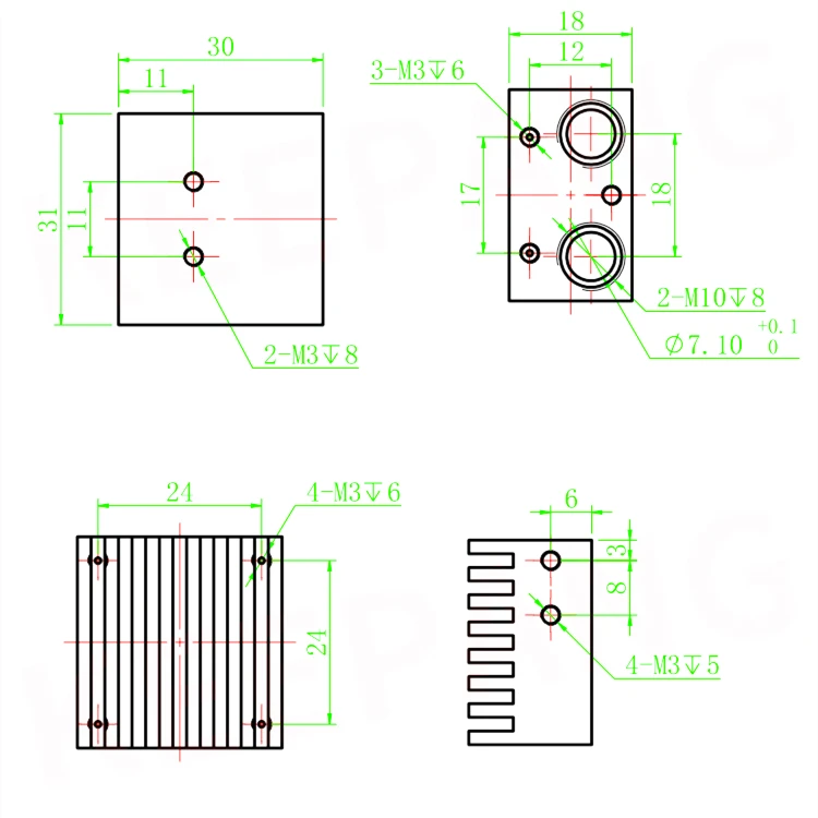 E3D одноголовый двухцветный смешанный цветной сопло теплоотвод алюминиевый блок 3D принтер Металл e3d экструзионные аксессуары