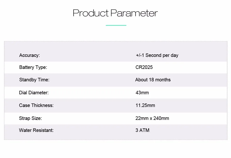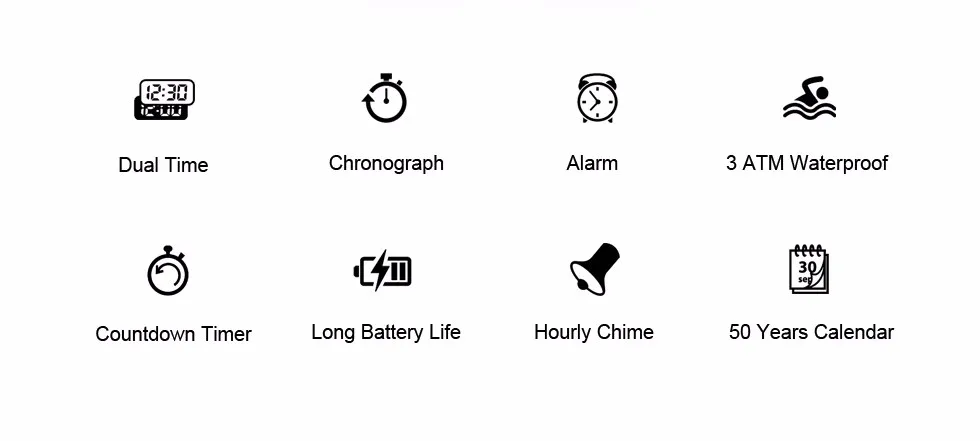 Водонепроницаемость 30 метров--Часы водонепроницаемы до 3 АТМ. Без проблем носить наши часы во время ежедневного ухода и дождя, кроме плавания, дайвинга и сауны.