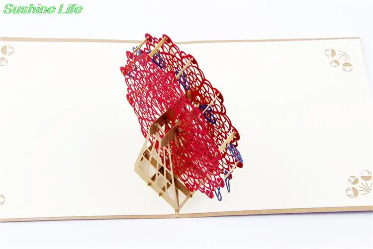 3 шт./лот винтажное Колесо обозрения 3D стоячая крафт-бумага с Киригами, лазерная резка с оригами, открытки ручной работы, подарочные поздравительные открытки